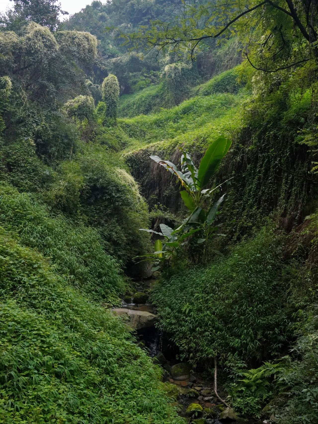穿过菜市场、草药铺,就到达黄葛古道的入口,走进古道,可以选择去老君洞,再去老街。