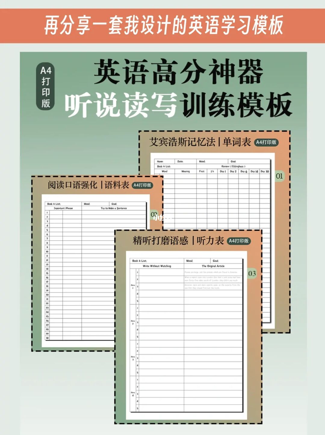 对啦,再分享2套我设计的英语学习模板,曾经分享给1000+小伙伴,特别好用~