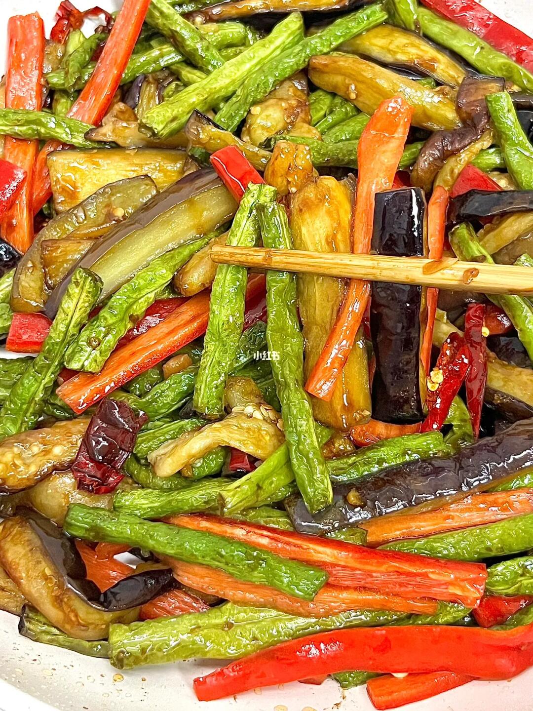 一碗大米饭都不够吃!! 🌟食材: 豆角、茄子、彩椒 🌟步骤 见上图