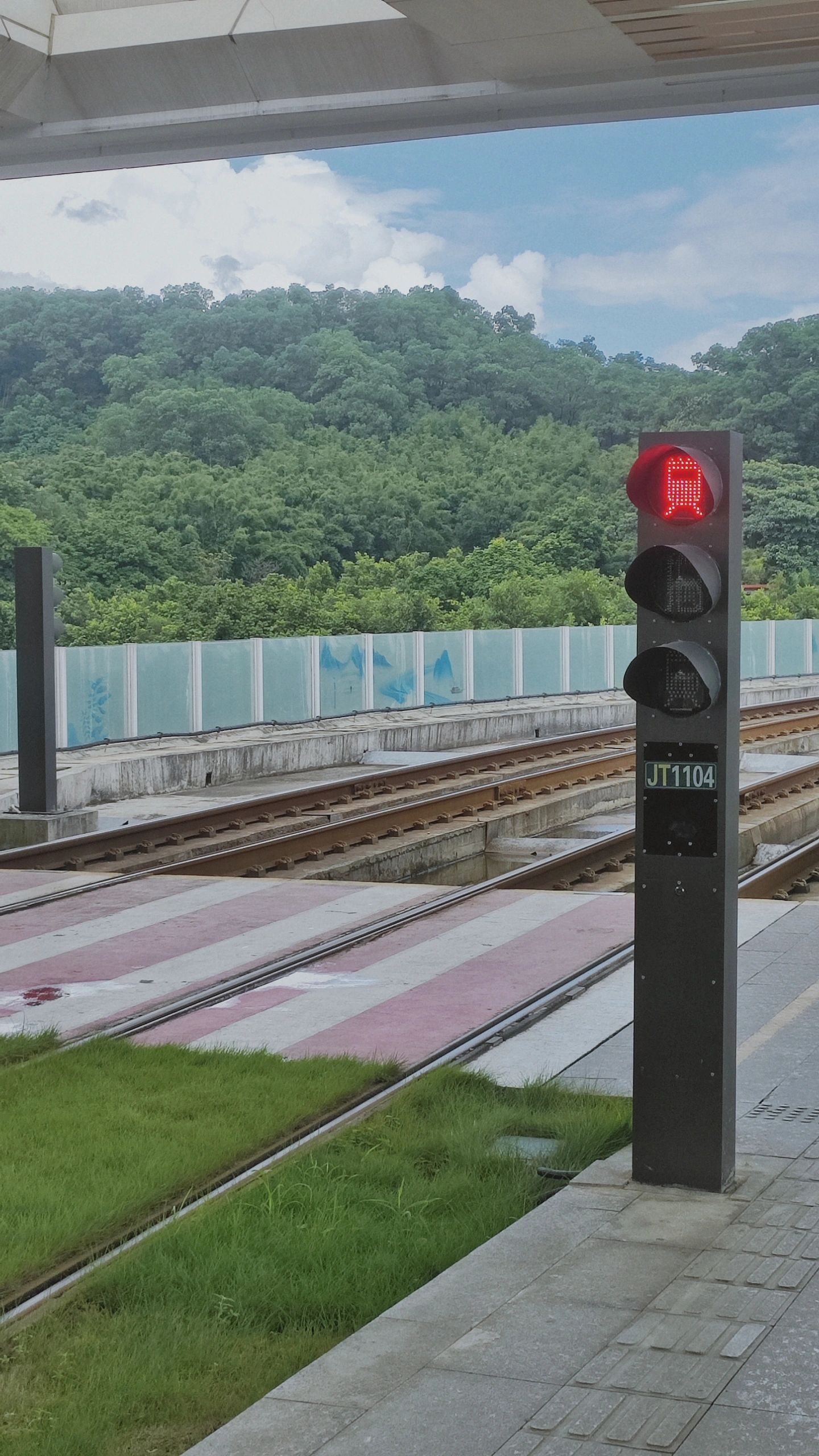 电车站台🚉很好拍照,绿绿草坪轨道➕蓝天白云,美好要素集齐。