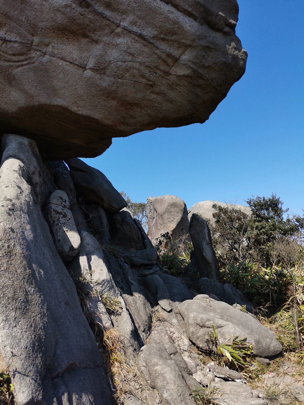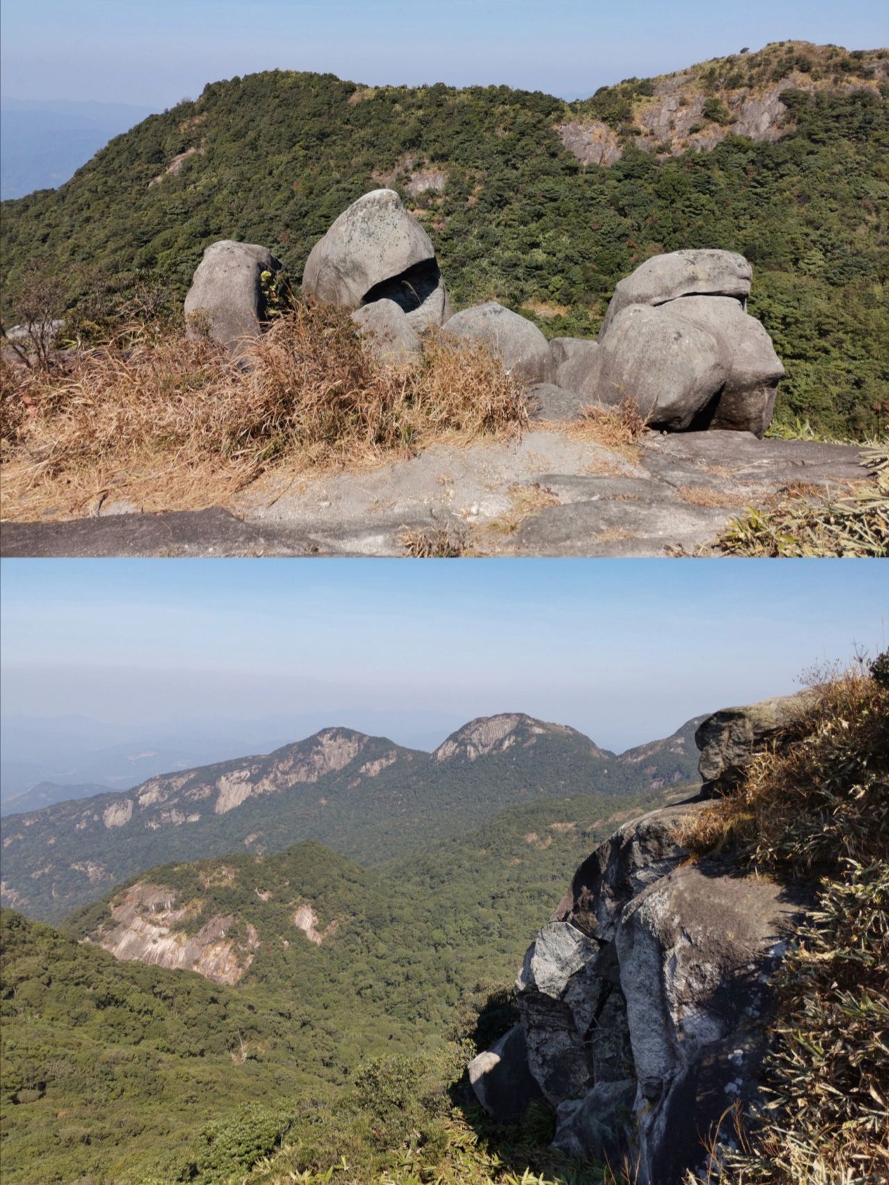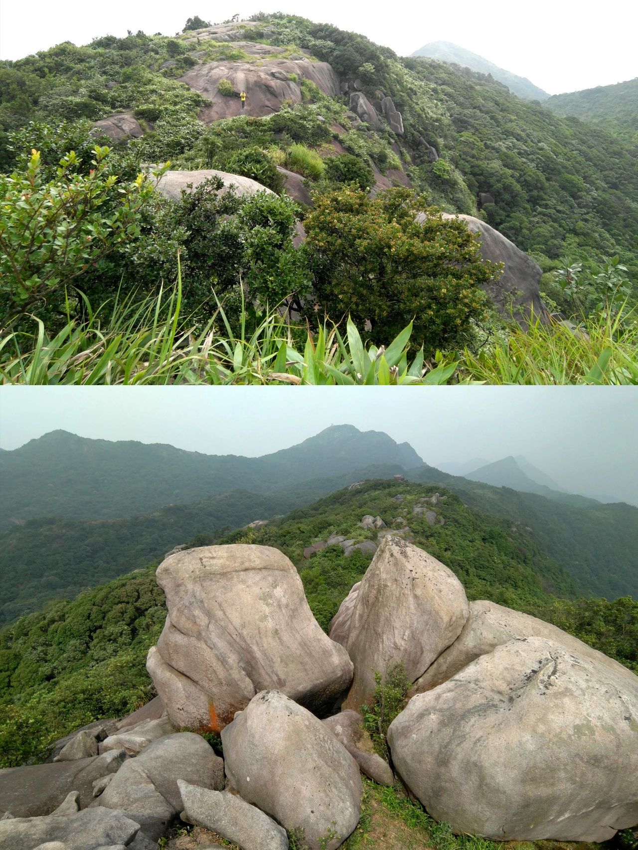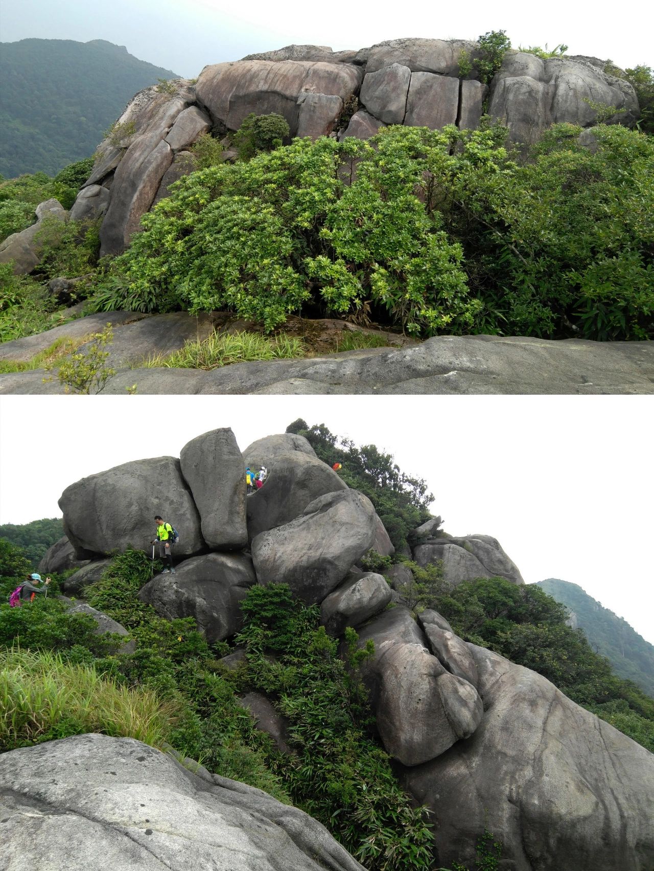 三角髻和老虎头在同一山脊线上,可以来个完美的东西穿越 三虎天地线,可惜山脊植被基本是矮竹林和低矮灌木,一路打脸。