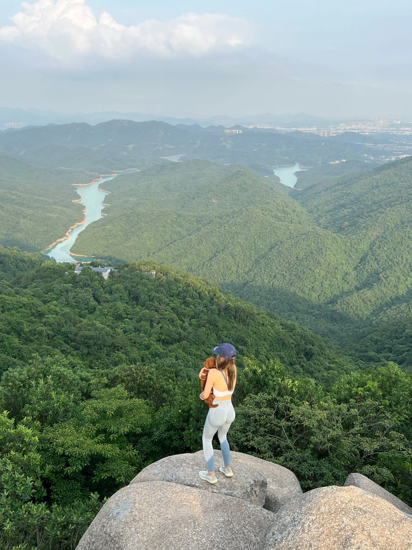 花都了哥髻|难度 ⭐ ️ 🚗到达“天皇庙”下车开始走 我们走的是小环线(因为去的太晚啦🌚) 爬到顶大概40min 除了有段要借助一下藤条的上坡其实都很好走啦!🐶友好(比我强) 中途🈚️wc🈚️店铺 途中景点一般 勇往直前啊兄弟们!⛰️顶嘎嘎好看!