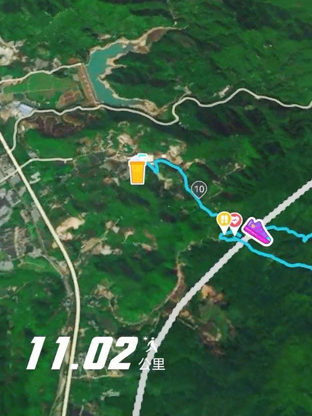 当你下到山底,会见到水库,然后不能继续直走,要走右手边趟水过去另一边,沿着水边边走