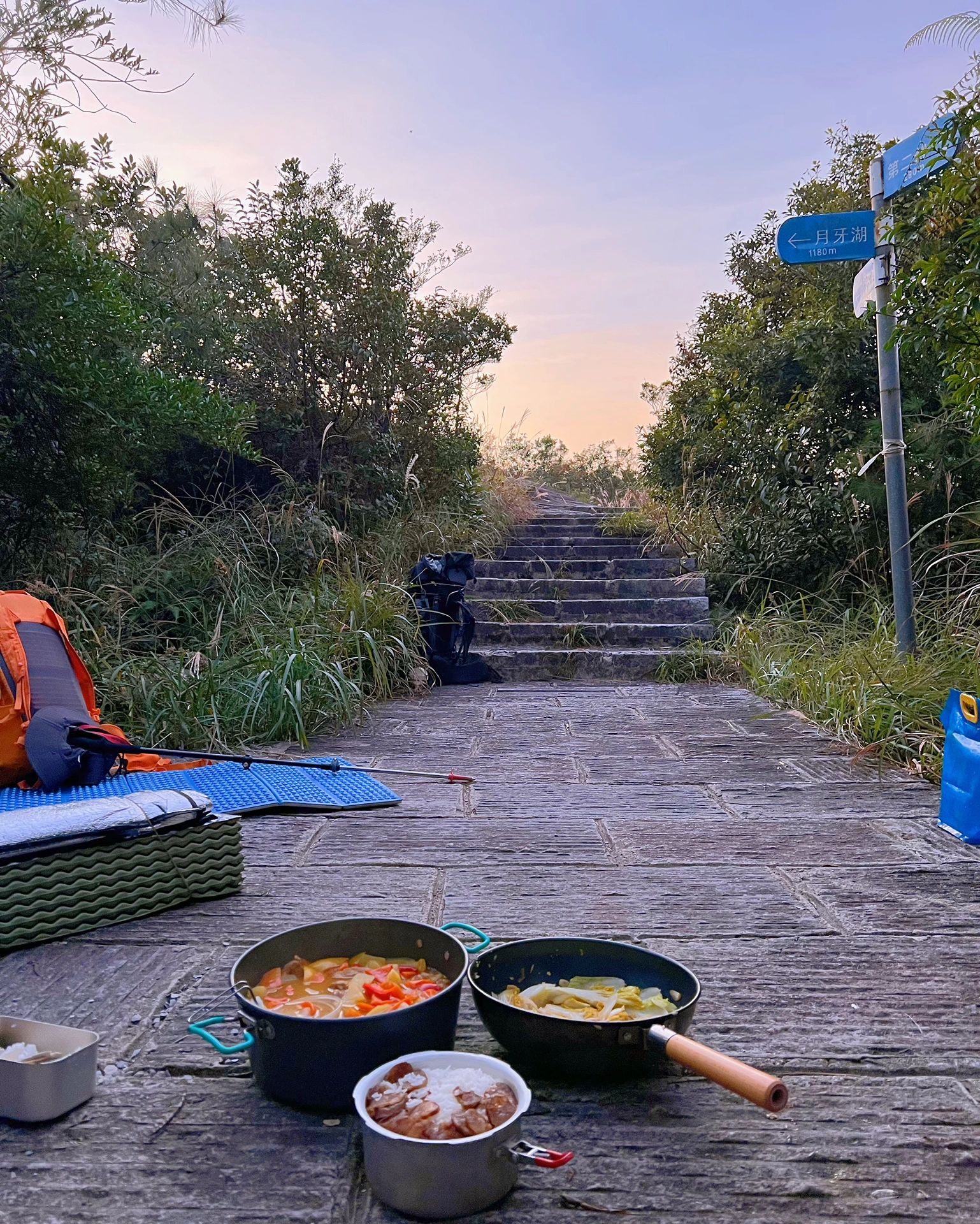下午三点多到达山顶,在山顶休息调整片刻,欣赏日落,然后开始做丰富的晚餐