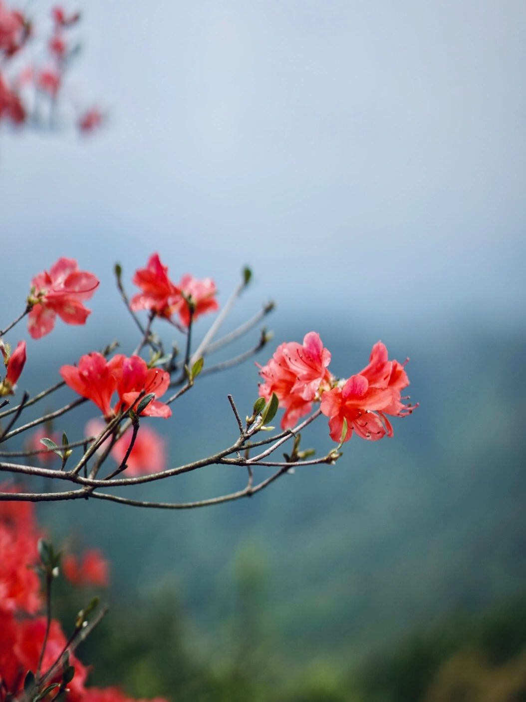 虽然没赶上满山杜鹃的壮观,还是幸运的看到了一丛丛灿烂的🌺并且原本天气预报说大暴雨而我们遇上晴天!