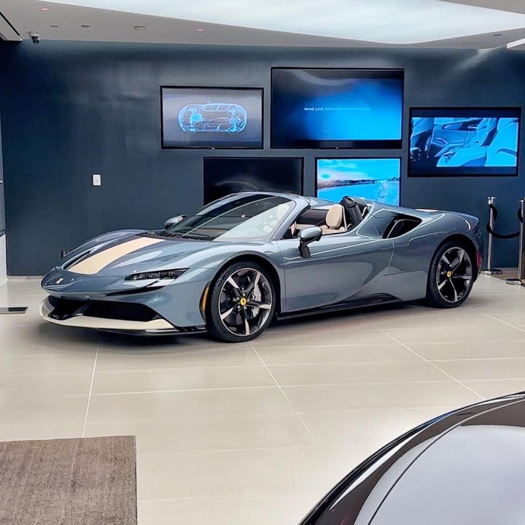 #shen车视界##色彩档案馆# 今日份的蓝色法拉利,Blu Genziana蓝,日光下是蓝色,室内灯光下会出现紫色色调,相当惊艳。