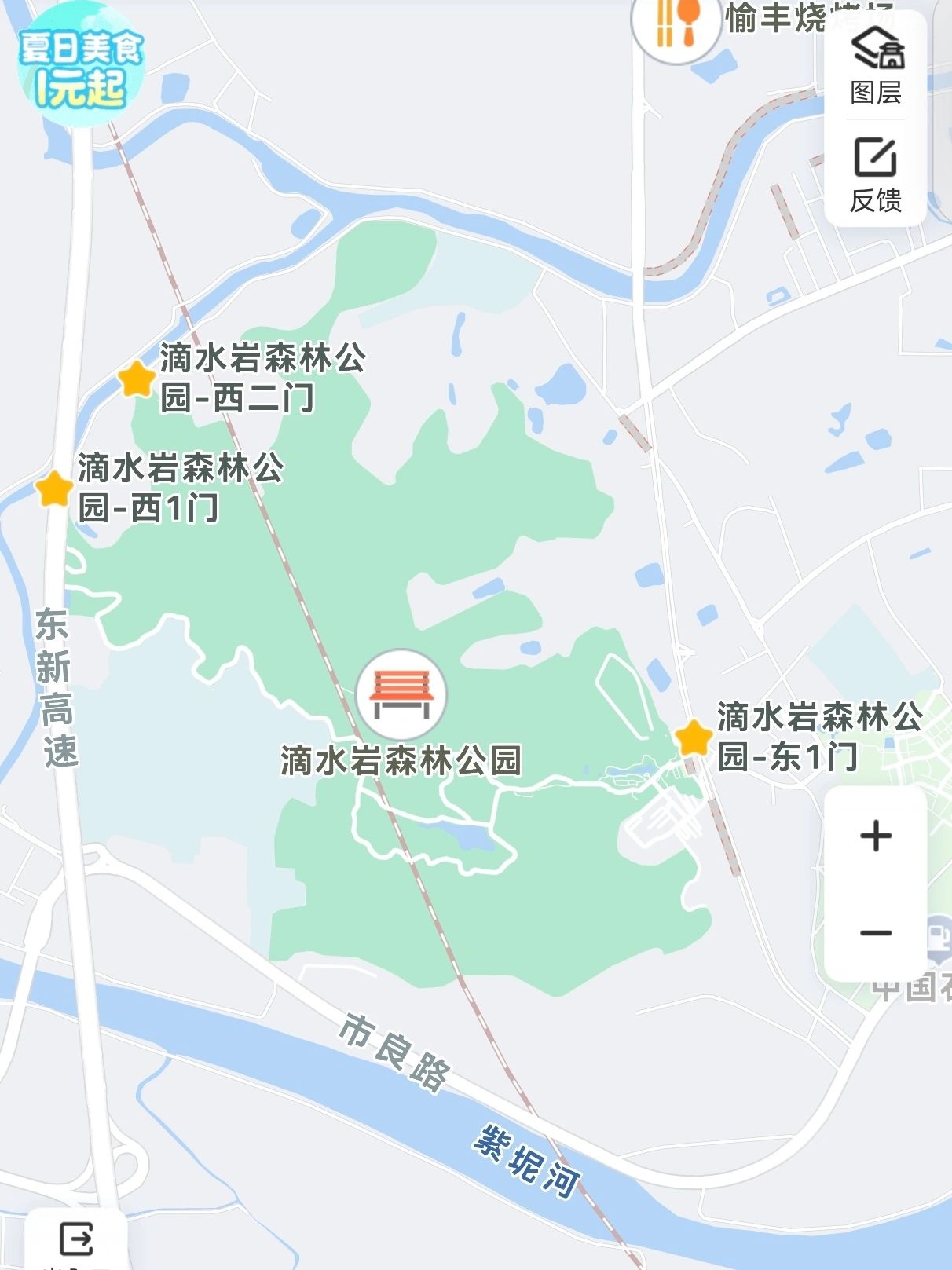 百度地图导航到滴水岩森林公园-西1门,然后按照路书(见图14)就能找到啦。