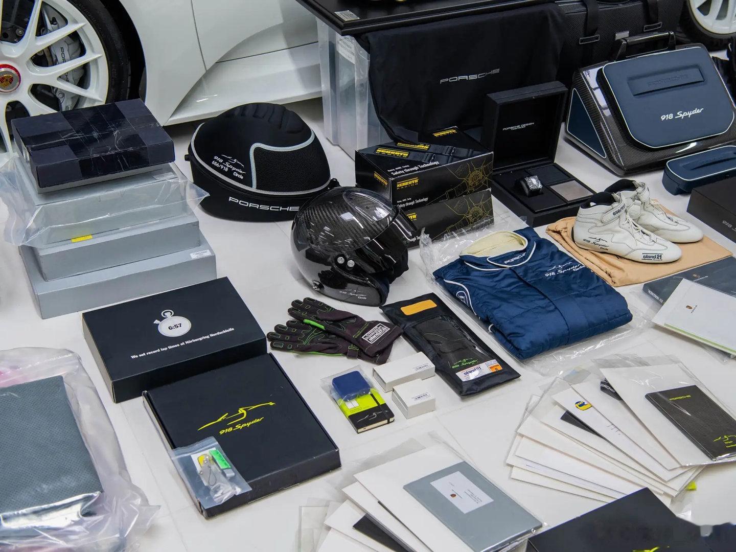 产品册,车主手册,油漆和皮革样品,配套赛车服头盔,模型,Porsche Design手表等等,随车一起拍卖。