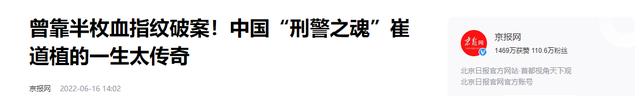 京报网 2022-06-16《曾靠半枚血指纹破案!中国“刑警之魂”崔道植的一生太传奇》