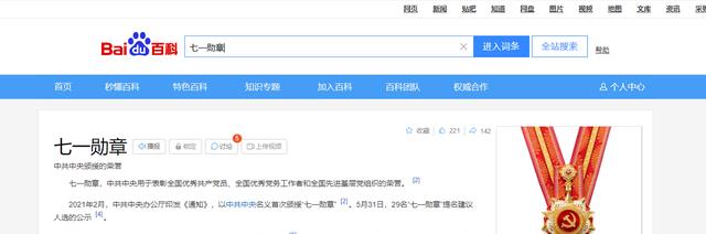 2021年6月29日,在中国共产党成立100周年之际,国家颁发了“七一勋章”。