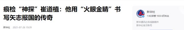 新华社 2021-07-26《痕检“神探”崔道植:他用“火眼金睛”书写矢志报国的传奇》