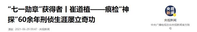 央视新闻 2021-06-29《“七一勋章”获得者丨崔道植——痕检“神探”60余年刑侦生涯屡立奇功》