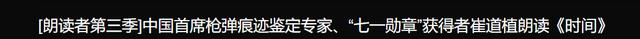 央视网 2021-10-09《[朗读者第三季]中国首席枪弹痕迹鉴定专家、“七一勋章”获得者崔道植朗读<时间>》