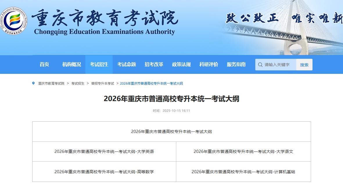 而昨天刚出的2026年重庆专升本考试大纲,对比2025年考纲内容基本没有大的变动,仅有部分科目有微小调整。