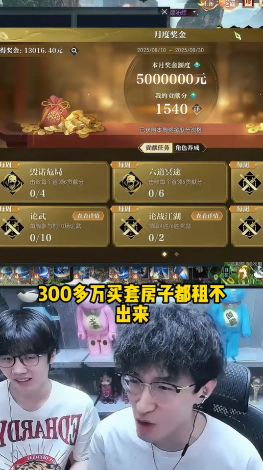 今年1月,《逆水寒》黄金服上线,浮夸就第一时间加入进来,他“壕无人性”的特质更加表露无疑。为了在游戏中打造出全服第一的神兵利器,他一度以超过两万元的价格收购“逆水之寒”词条,为了能够在皇城战、帮会联赛中方呼风唤雨,他也一边刷脸一边发福利,招募了一大帮有操作水平有消费能力的高玩加入自己的帮会,以绝对的战力优势,成功在服务器中呼风唤雨。