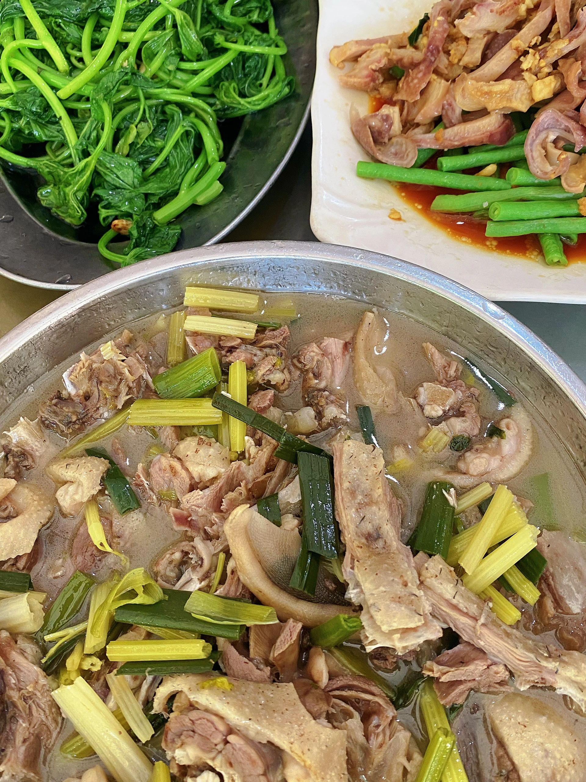 鹅肉味道酸甜口还可以,猪肚做得太老嚼得费劲,番薯叶也有点老,我俩接着点了小龙虾外卖回去接着吃哈哈哈。
