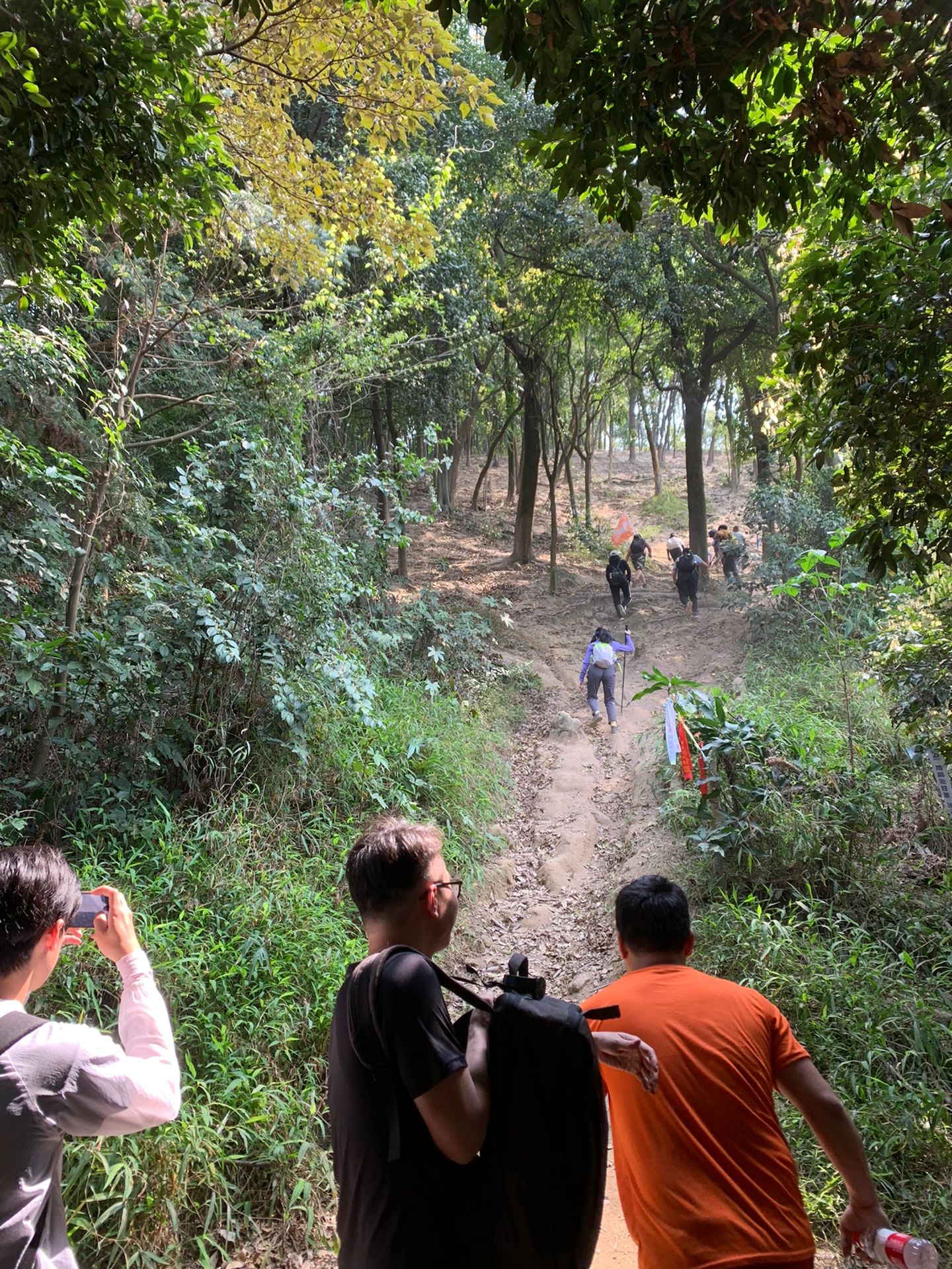 刚开始迟到了,自已开始追了一小段才追上大伙,走了没多远,有一个女生因为没吃早餐