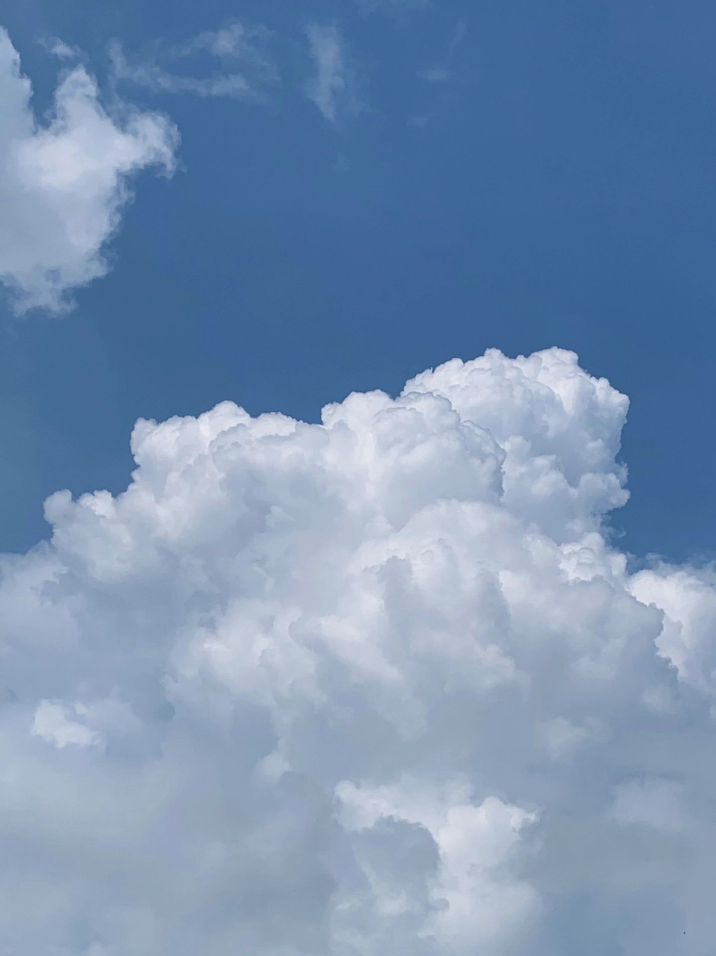 夏日晴天,穿过树林可以听蝉鸣,走到开阔的地方又能看云卷云舒。好喜欢大朵大朵棉花糖一样温柔又俏皮的云。