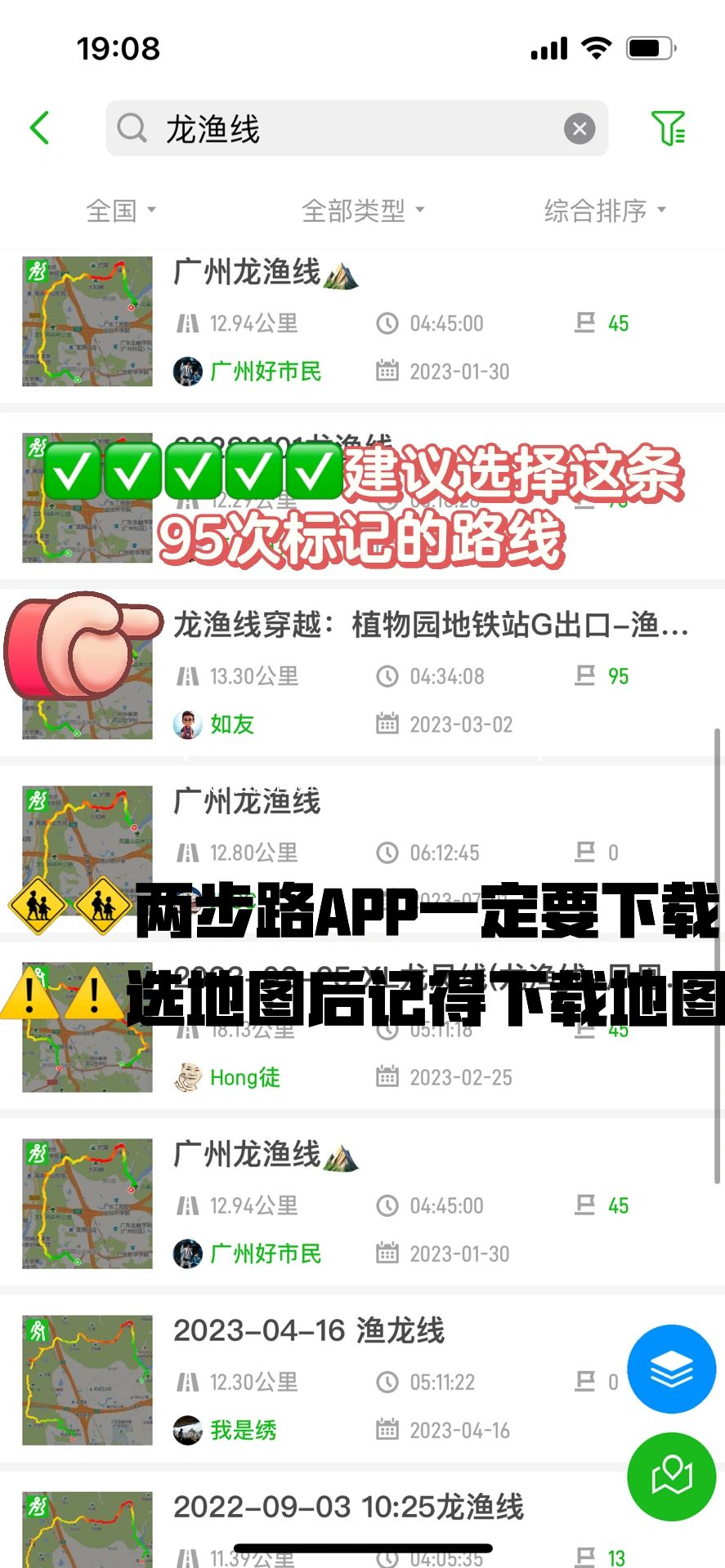 【两步路】搜索“龙渔线”,选择网友“如友”上传的有95标记的路线。见图2️⃣图3️⃣