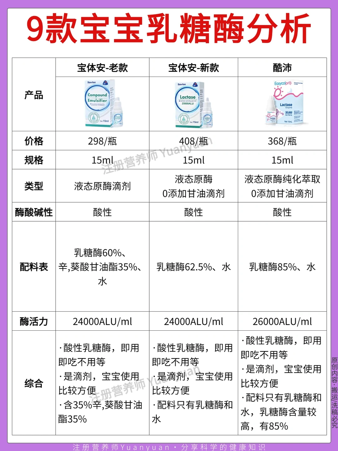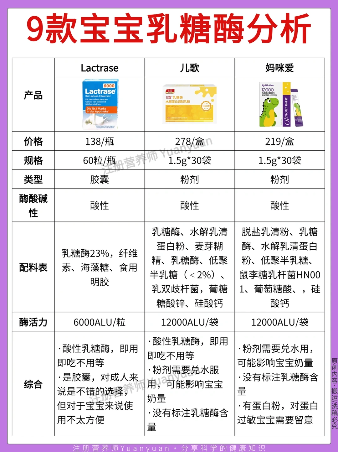 📌这次也特意挑选了9款热门的乳糖酶,每种类型的乳糖酶都有[耶R]