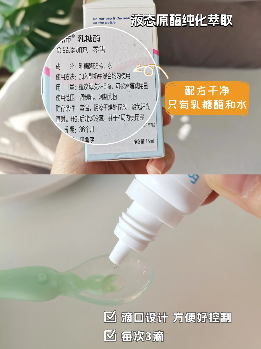 乳糖酶发展史:1⃣胶囊型→2⃣粉剂→3⃣酶粉复溶滴剂→4⃣液态原酶滴剂→5⃣液态原酶、0添加甘油滴剂→6⃣液态原酶纯化萃取、0添加甘油滴剂