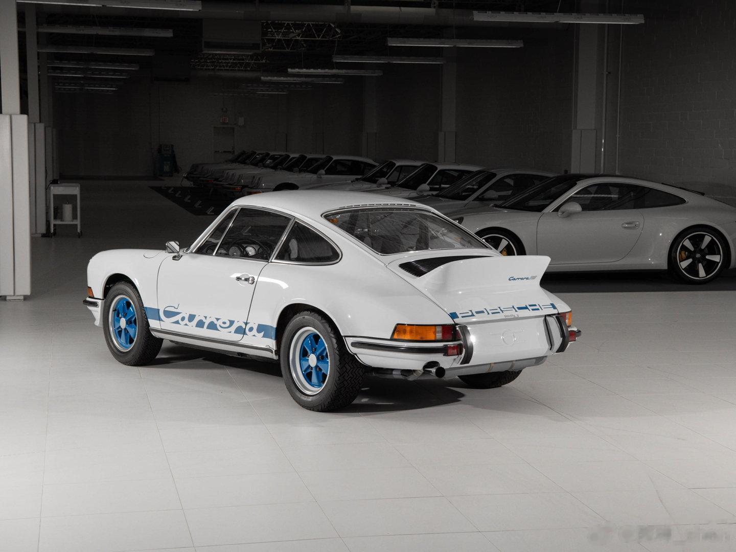 Carrera RS 2.7,初代911的终极车型——白色车身蓝色拉花的是Touring版,预估价90万-120万美元;白色车身红色拉花的是Sport版,预估价175万-200万美元。