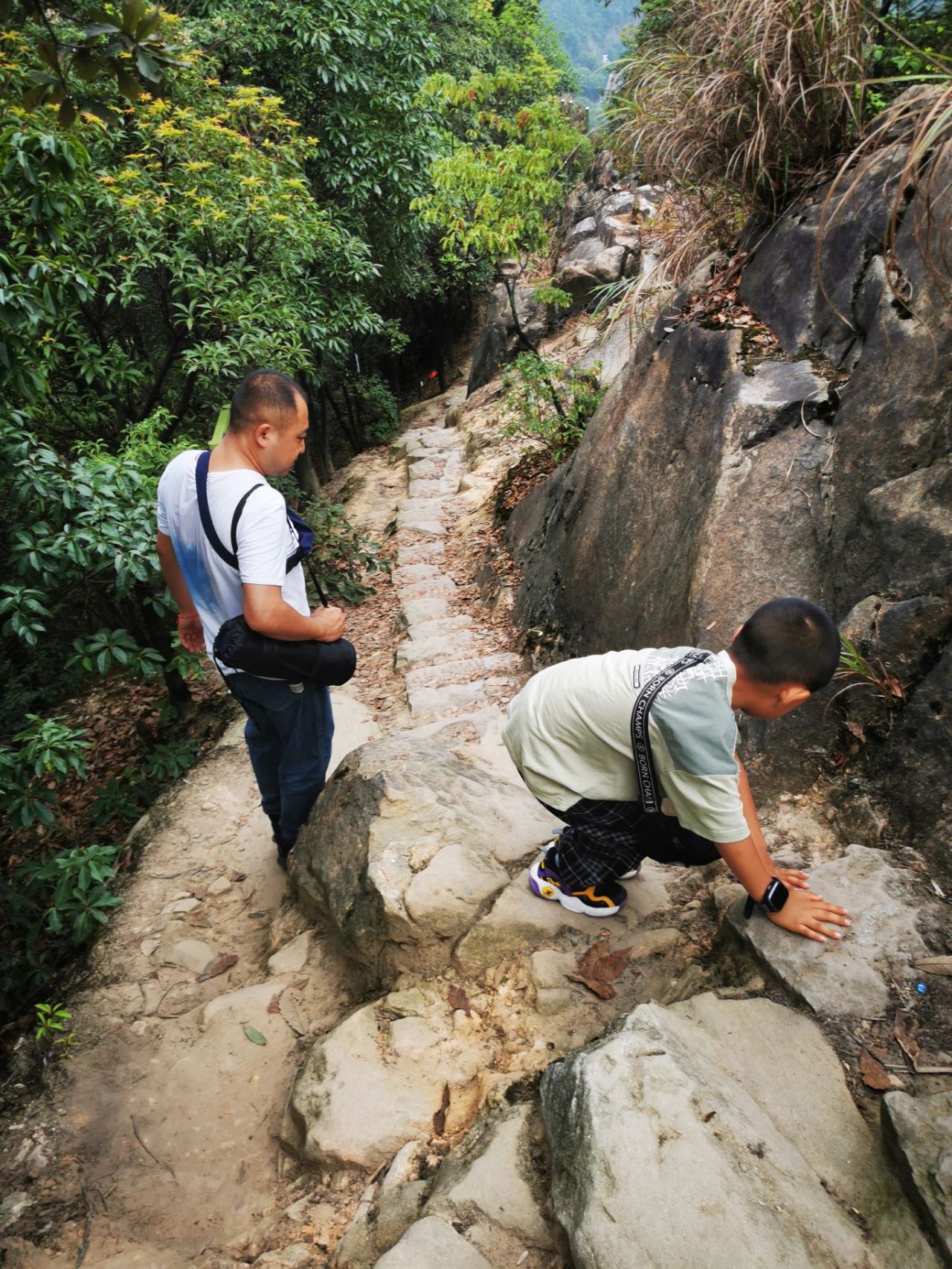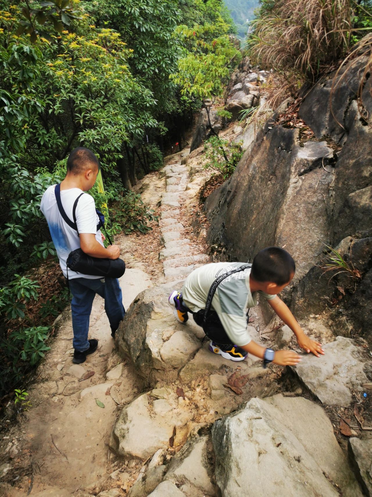 线路惊喜:途遇小朋友,互相鼓励;石头路充满刺激,手脚并用,爬高不怕怕了呢,刘老大兴奋劲劲的💪