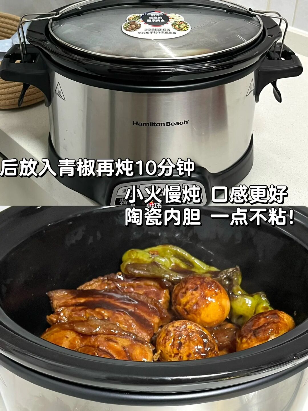 🌟用慢炖锅,高档炖煮2.5小时,最后放青椒
