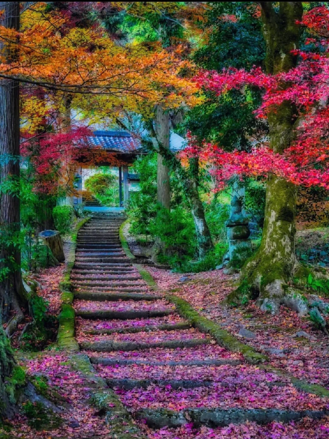 龍穩寺建于1509年,历史很悠久。由于这里相对偏僻而且交通不便,也就导致这里的游人并不多,但是近两年由于达人拍摄的照片真的很出片,名声也逐渐大了起来,一走进寺门就能看到红叶落满参道,染遍溪谷,红色黄色和绿色相映之下,寺庙充满了韵味。龍穩寺并不大,一小时就能逛完,深秋时节的落叶就像是龍穩寺的红色地毯