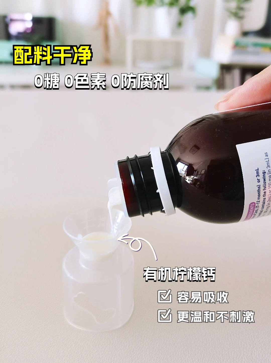 ✅采用的是有机柠檬酸钙,对宝宝肠胃更温和不刺激,也更容易吸收。每10ml的含钙量相当于2大杯牛奶,太适合我家喝奶不够的小满了。
