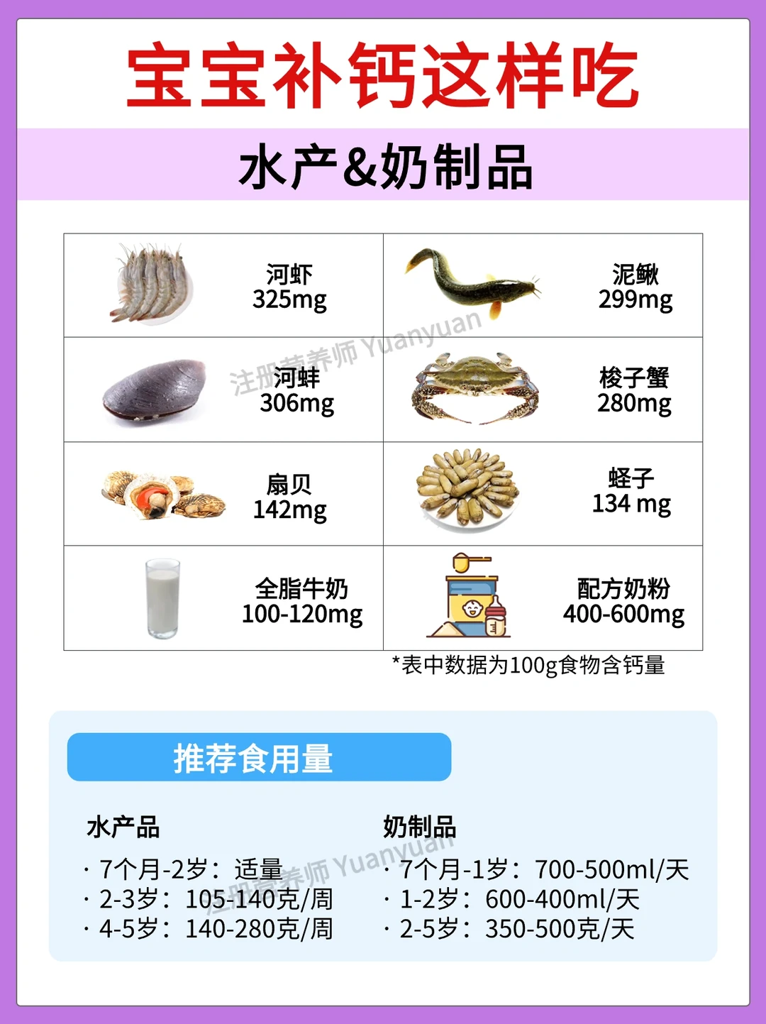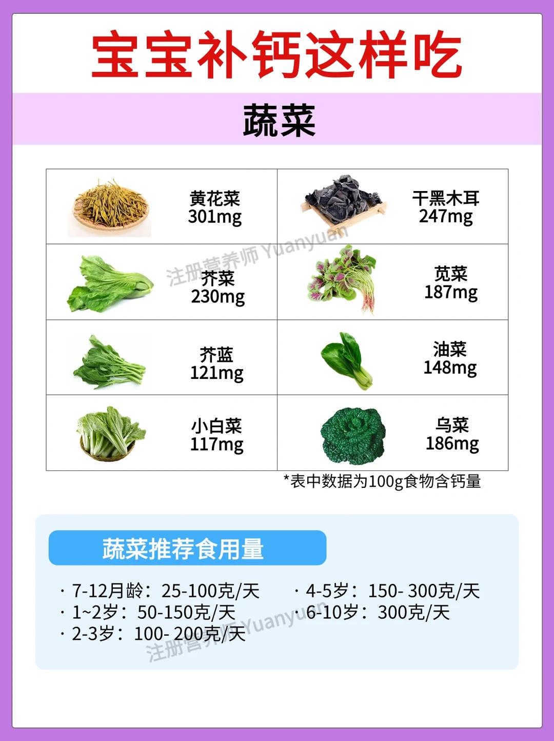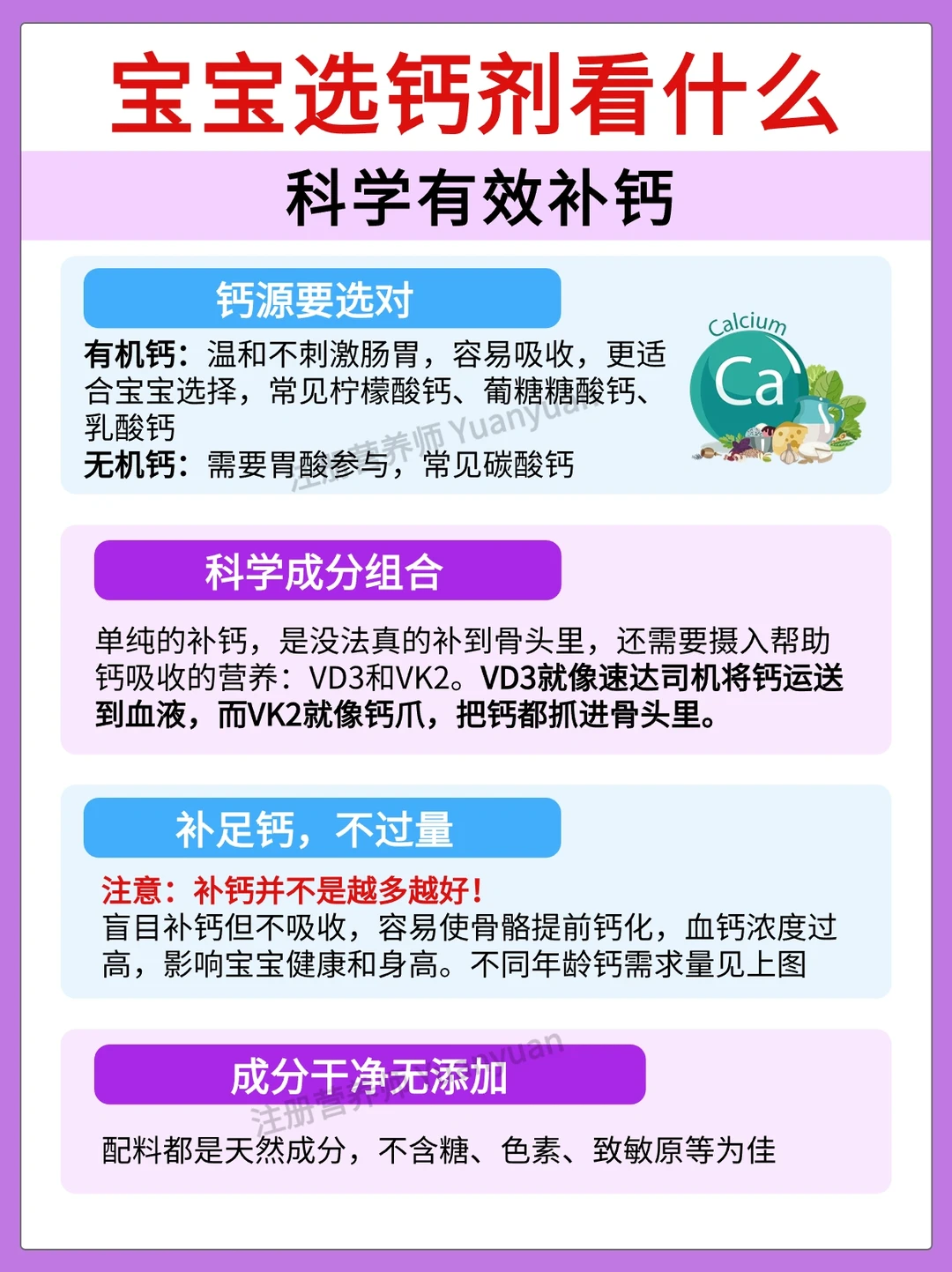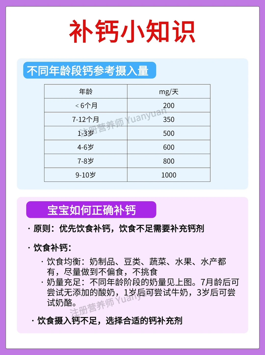 📢如果从食物中获取的钙不足,也可以给宝宝补充钙剂。