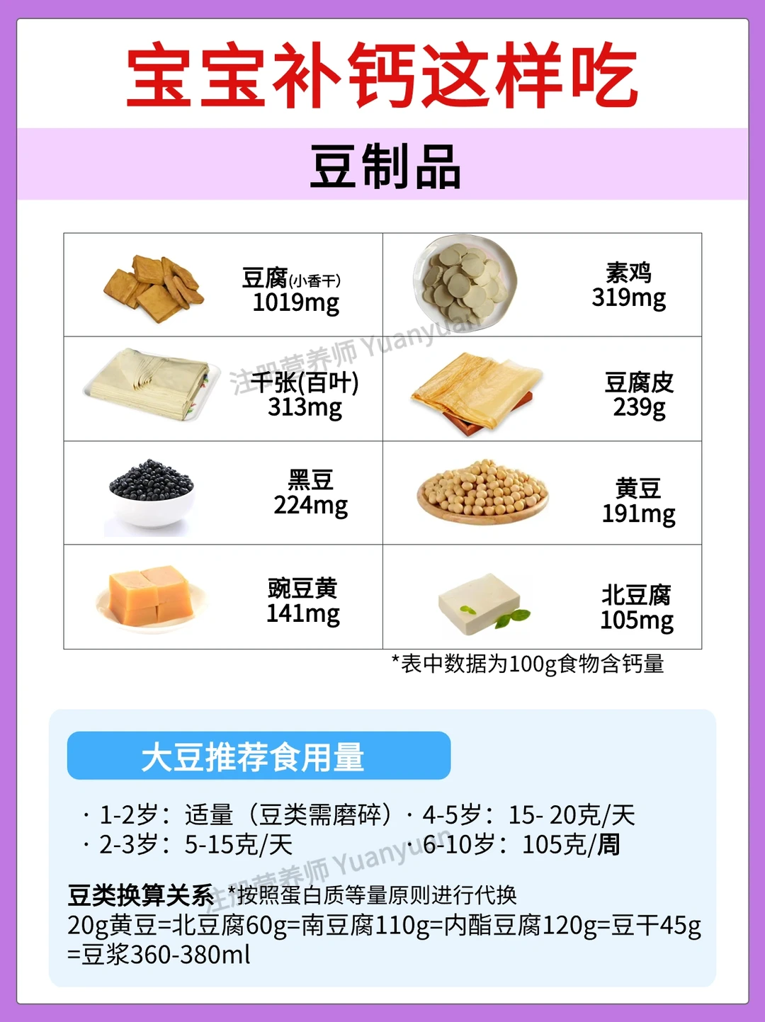 🌈根据宝宝年龄和饮食决定补钙量,不同年龄宝宝需要钙量见图5,常见富含钙食物见图2-4