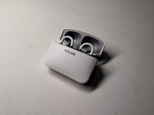 这款耳机佩戴方面也不错,和前面的虹觅 HOLME Air2 有点像,也是前高后低的 2.5mm 错位设计,戴着更贴耳也更稳,加上∠12 弧面耳托,把电池位做成了弧面造型,贴在耳背上特别舒服,单只 4.5g 的重量,长时间戴也基本没负担。