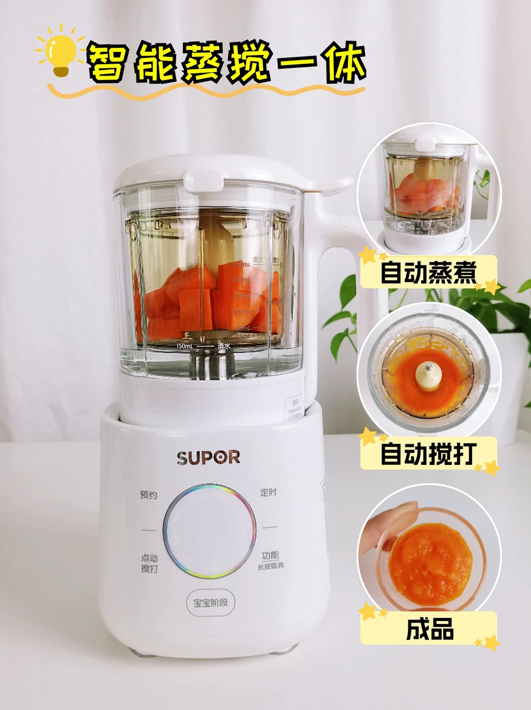 老公听到我的抱怨,默默入手了科学智能选择颗粒程度的辅食机,是苏泊尔分月龄辅食机。