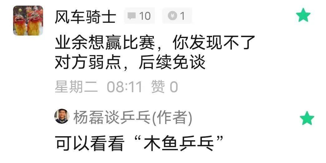 “木鱼乒乓”访谈录:打得多,不如打得“少” 业余球友木鱼乒乓分享自己的练球方法和心得,他认为练球要针对短板,抓发球、接发球的前三板技术,有自知之明,量力而行,同时挖掘天赋,明确核心,以最少的时间和精力实现最大的效果。他建议多球训练、比赛实践,以及注意培养自己的下意识,提升肌肉记忆。