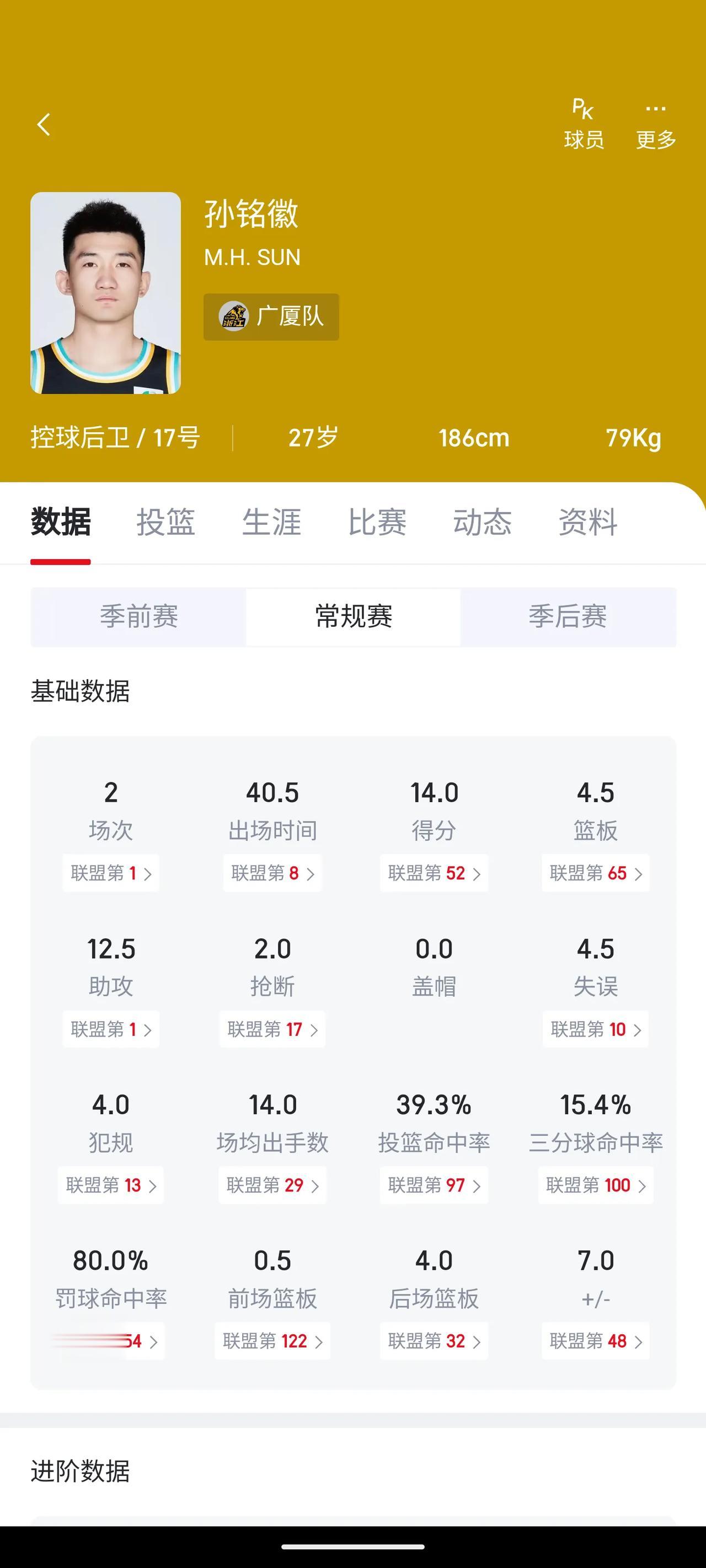 广厦还是要控制一下两个核心的出场时间,这才第二场,两个人就场均打了40分钟。 如果一直这么打的话,两个人的伤病隐患会很大,广厦还是要想办法摆脱太过依赖孙铭徽和胡金秋的方法。一个赛季这么长,生产队的驴也受不了的。 #中国男篮# #CBA联赛# #中国篮球# #CBA那些事#