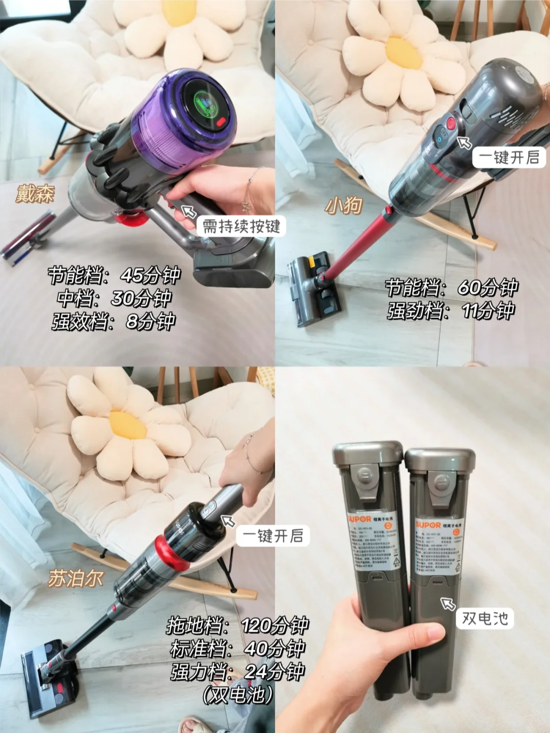 🤗综合来看,单纯只要吸尘的时候,女生用戴森是挺轻便好用的。如果日常清洁还是想要做得更干净到位一点的话,我还是觉得苏泊尔AP吸拖一体机适合一些,有两块电池续航时间更长,性价比也很可~