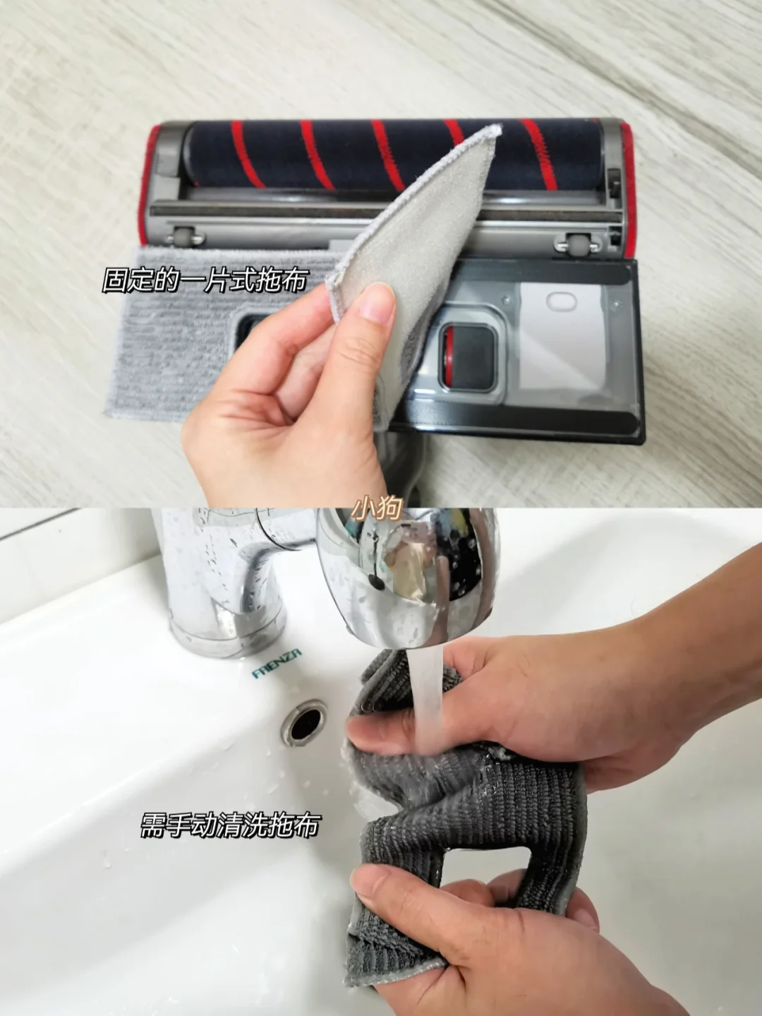 ❌缺点:拖布是固定的一片式的,清洁力度一般,无法清洁顽固污渍;拖布只有一块,而且需要手洗