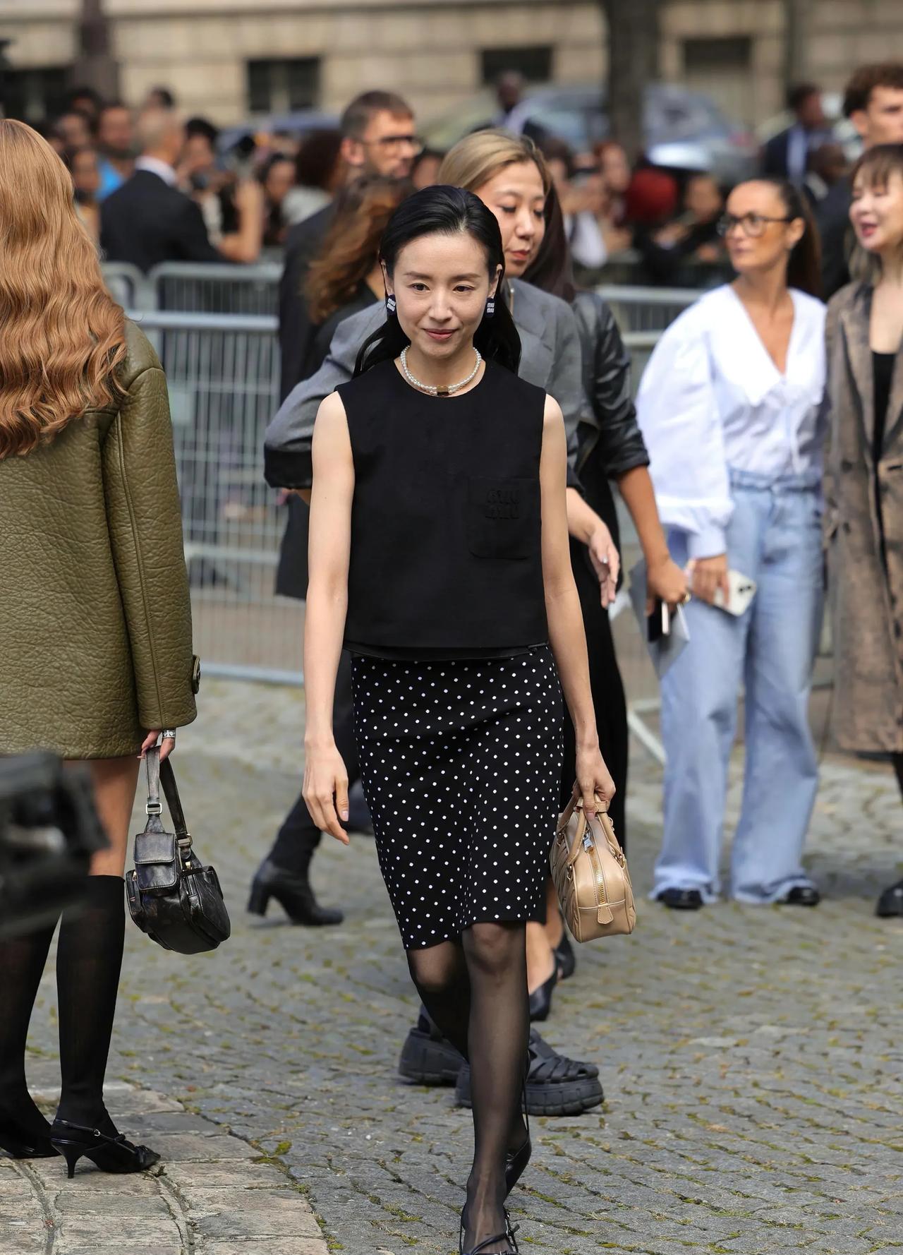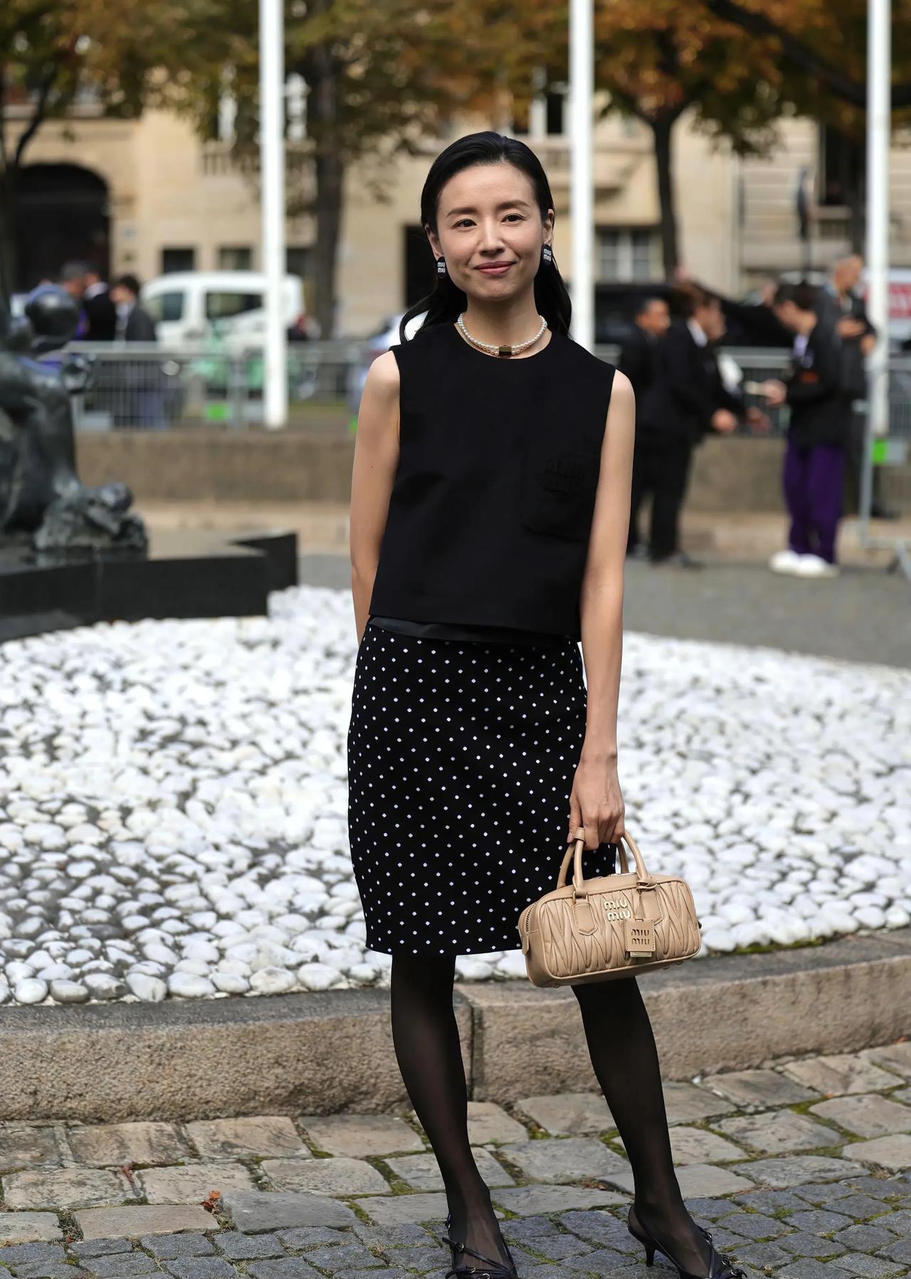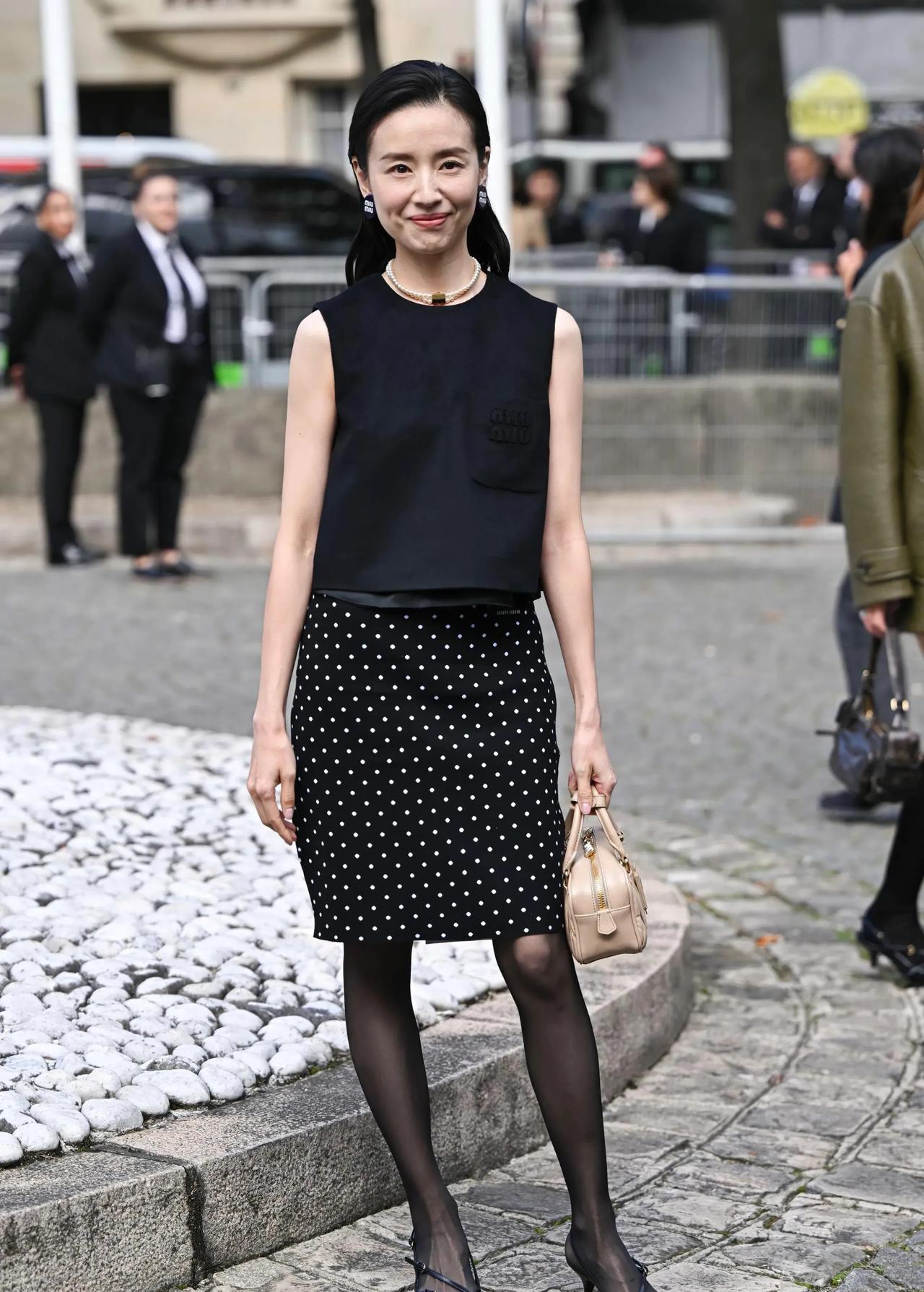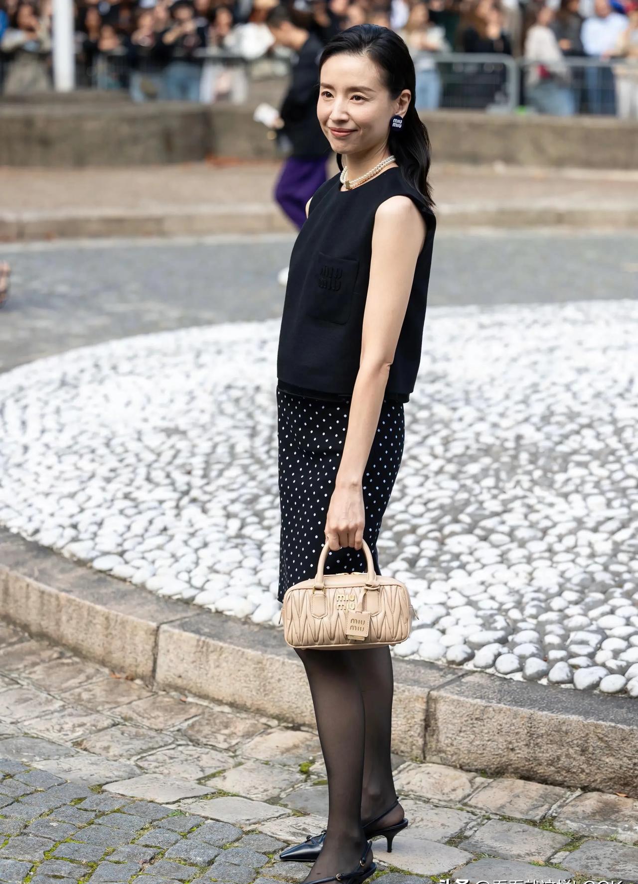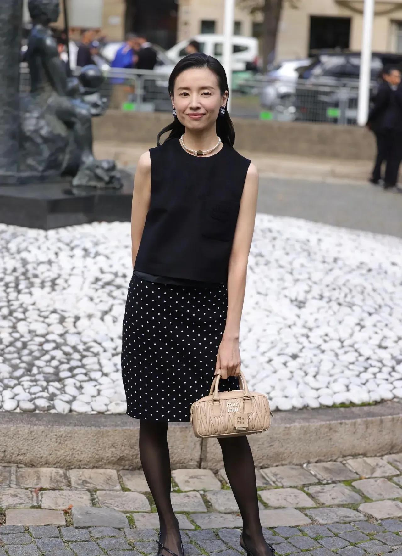 董洁明明那么瘦,还是偏要穿一身黑,看着“竹竿”一样不太美! 董洁也是优雅成熟的女性了,但这组造型似乎不适合她,只显得身材干瘦毫无韵味。 尤其是黑色套裙配黑丝袜、尖头猫跟鞋也选了黑色系,整体色调太暗了,显得她都有点灰头土脸的感觉。 #秋日生活打卡季#