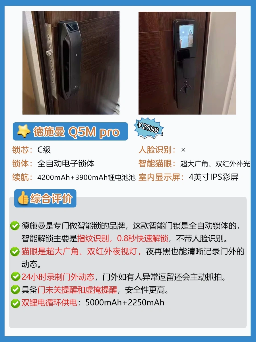 📝1-2k高性价比智能门锁选购技巧: