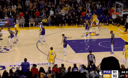 詹姆斯决胜时刻两次强突,帮助湖人95-91建立胜势! 北京时间10月27日,湖人与太阳的比赛进行至最后一分钟,詹姆斯两次强突,帮助湖人95-91建立胜势。 杜兰特连取4分,帮助太阳将比分追至91-91平,最后一分钟,需要巨星解决问题时: 图一:詹姆斯左侧强突上篮,帮助湖人93-91领先。 图二:杜兰特强投未果,詹姆斯第二次强突再得手,帮助球队95-91建立胜势。 关键时刻,需要巨星解决问题,詹姆斯做到了。