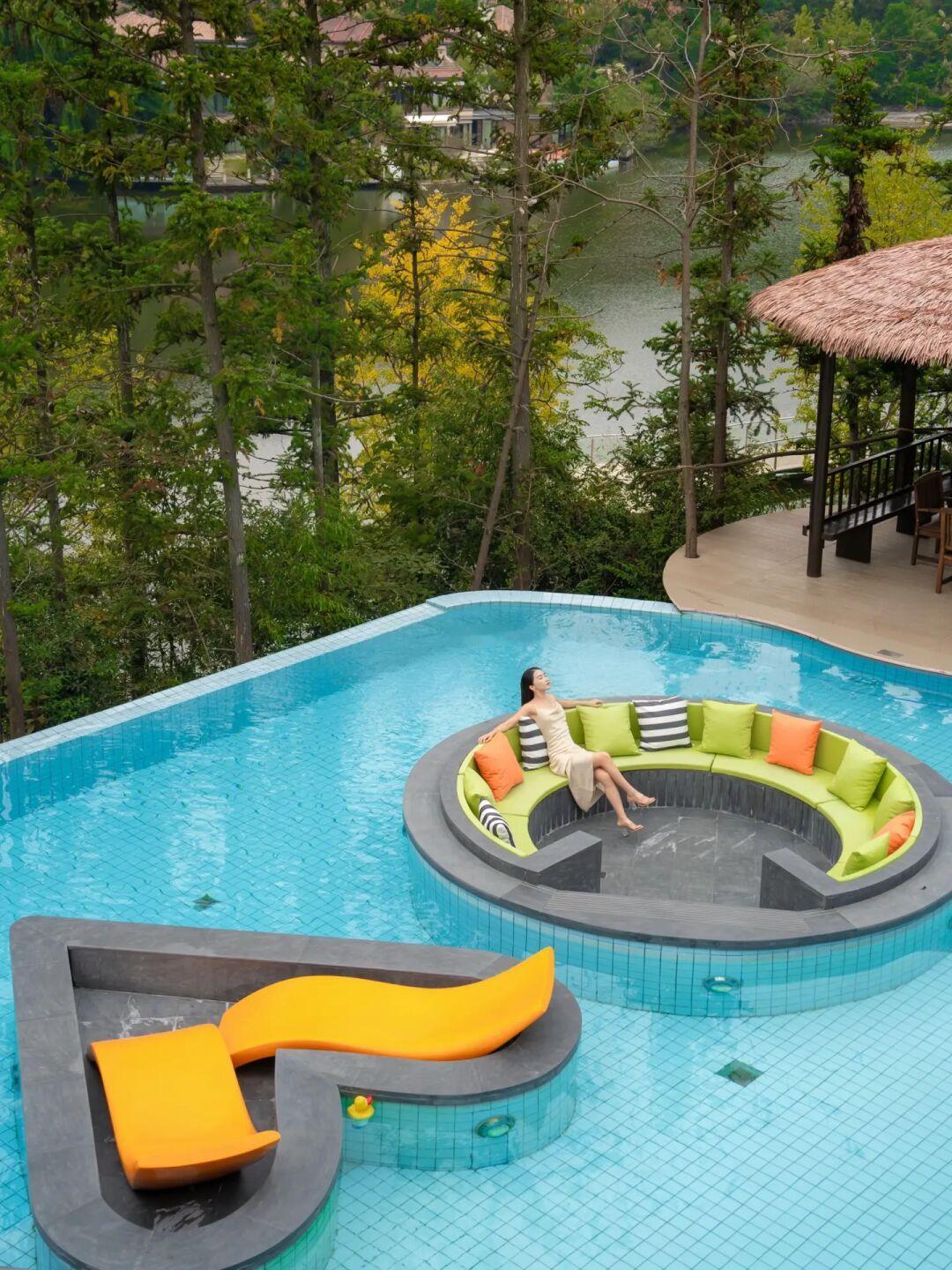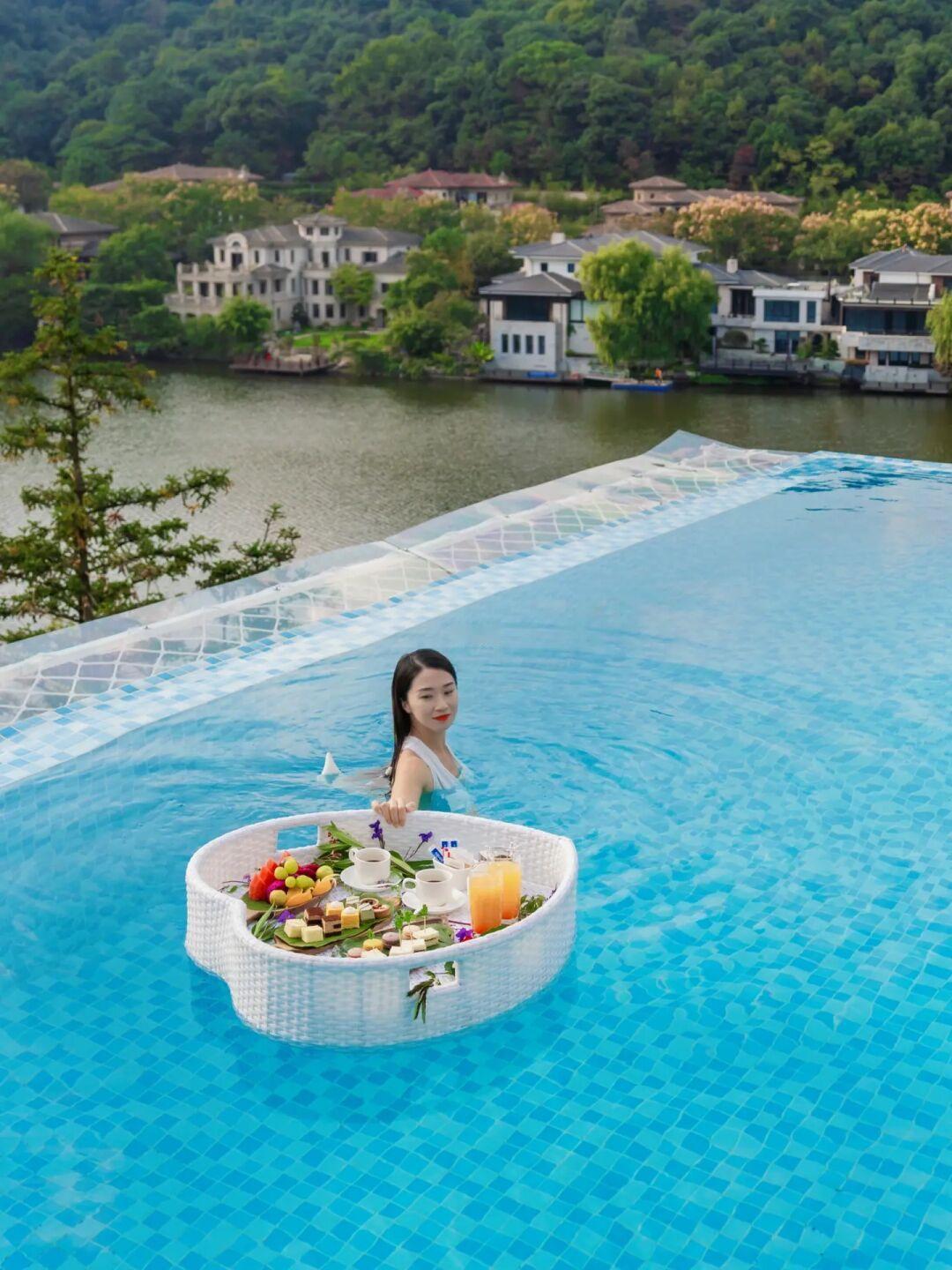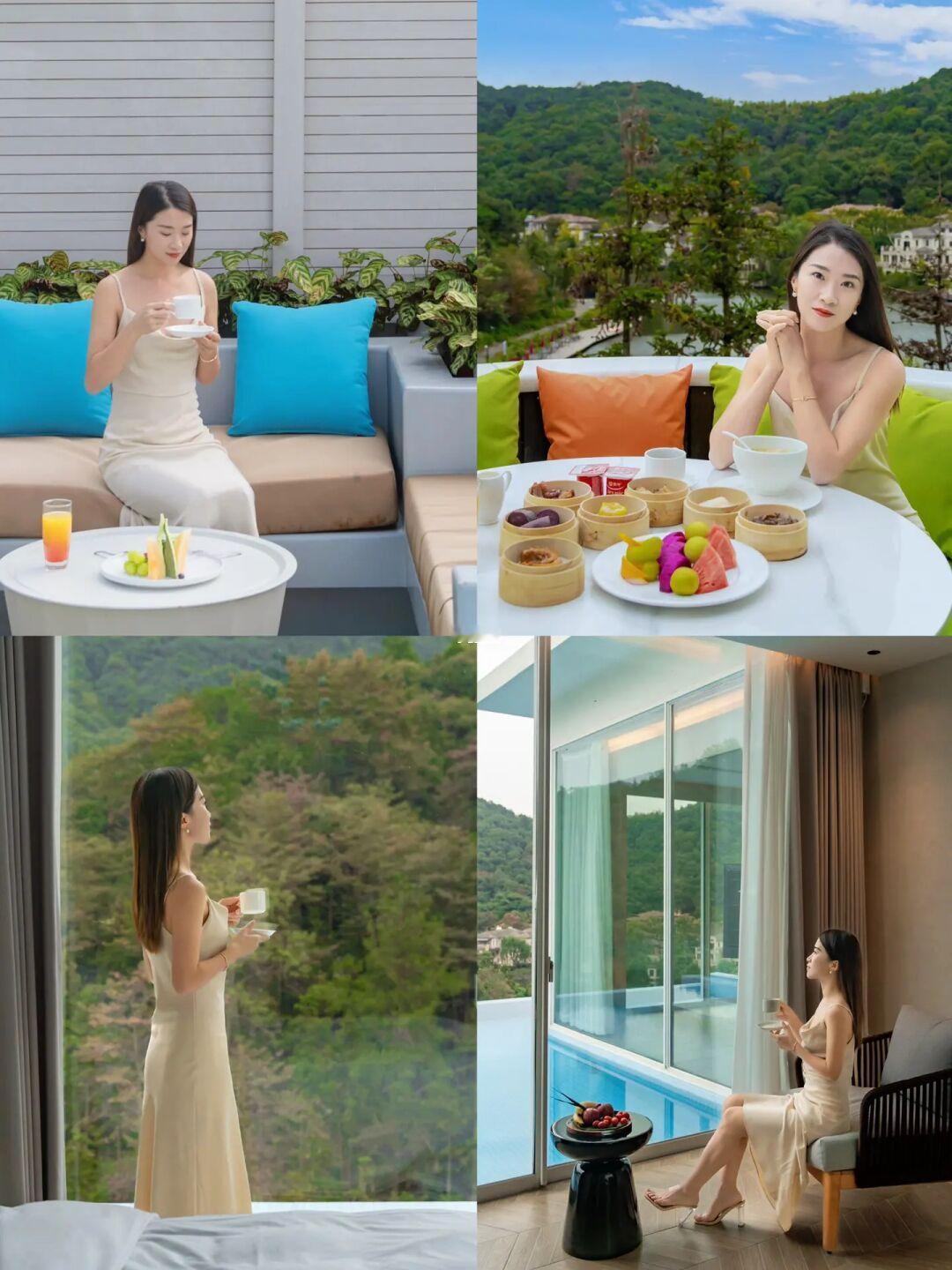 ~~~ OMG ‼️ 莫干山这个新开的悬泳度假酒店 真的好赞🤩🤩🤩 四季恒温泳池🏊漂浮下午茶☕️ 朋友都以为我又去巴厘岛了⛱️