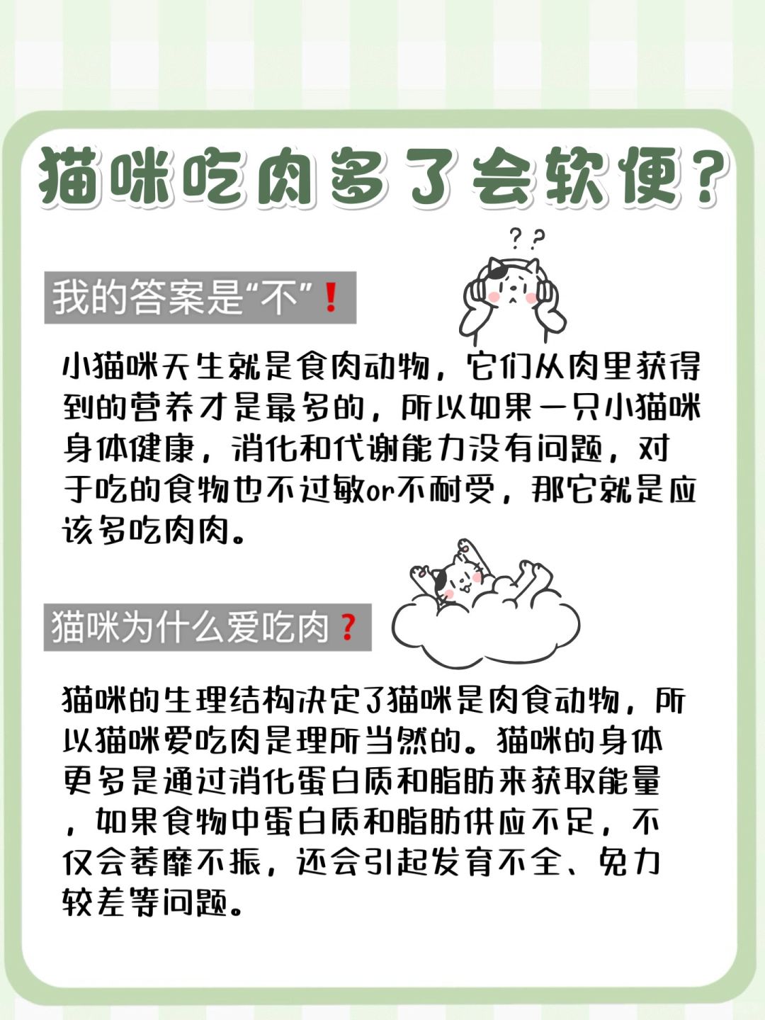 猫咪的生理结构决定了猫咪是肉食动物,所以猫咪爱吃肉是理所当然的。猫咪的身体更多是通过消化蛋白质和脂肪来获取能量,如果食物中蛋白质和脂肪供应不足,不仅会萎靡不振,还会引起发育不全、免力较差等问题。