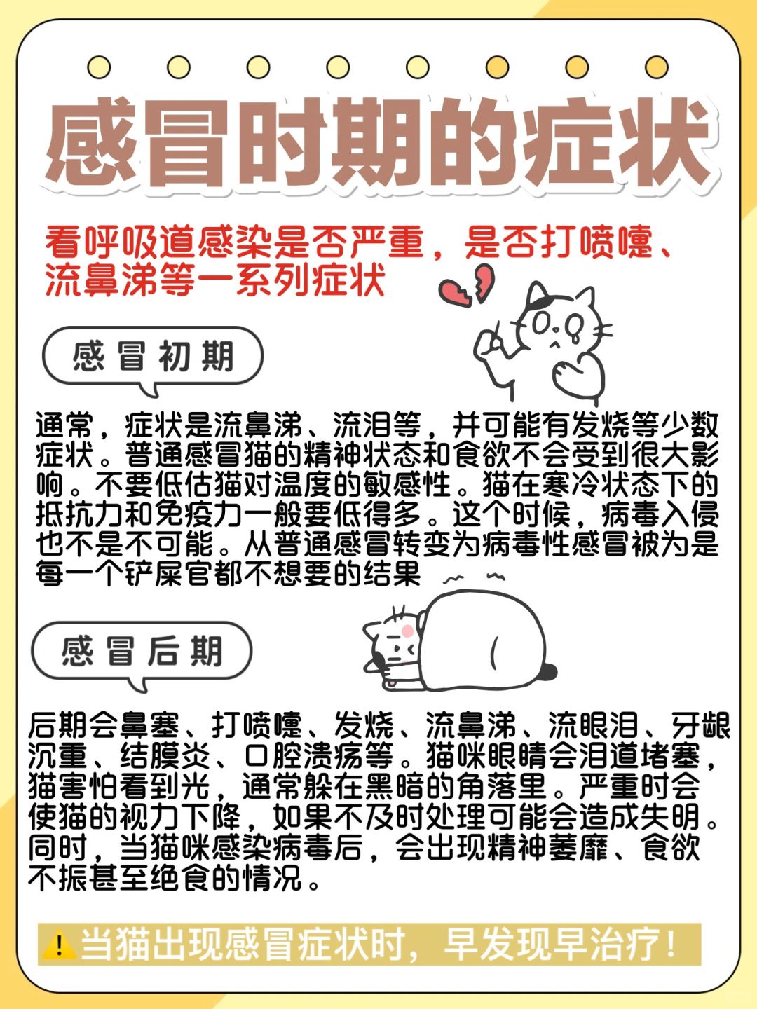 感冒前期跟后期的症状有所不同,我整理在了图2,铲屎官可以根据自家猫咪的情况判断。