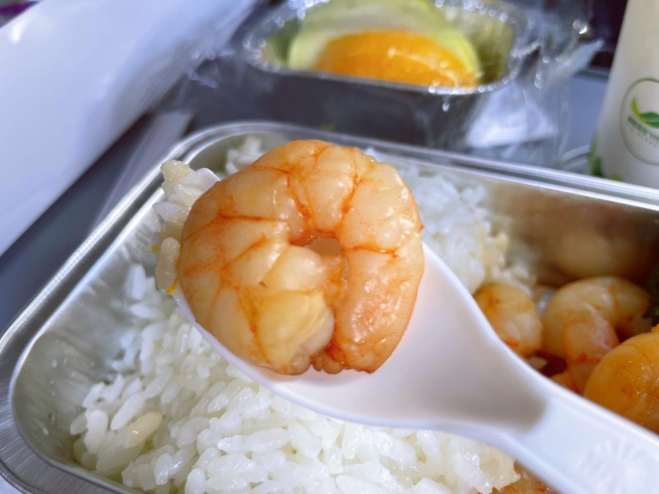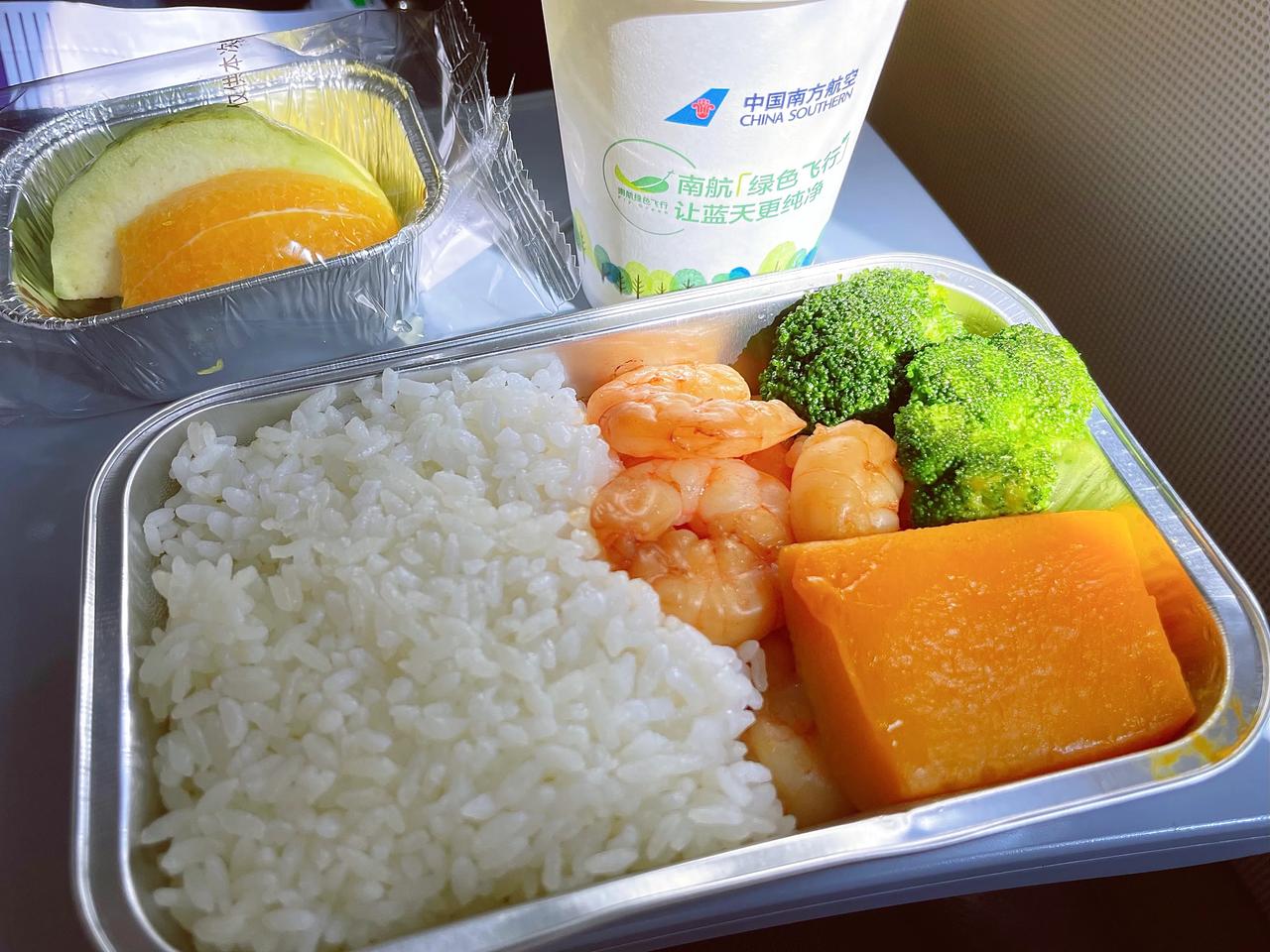 第一次体验南航的特殊餐食 海鲜餐味道还不错 虾🍤很多 特殊餐食是免费的 南航有