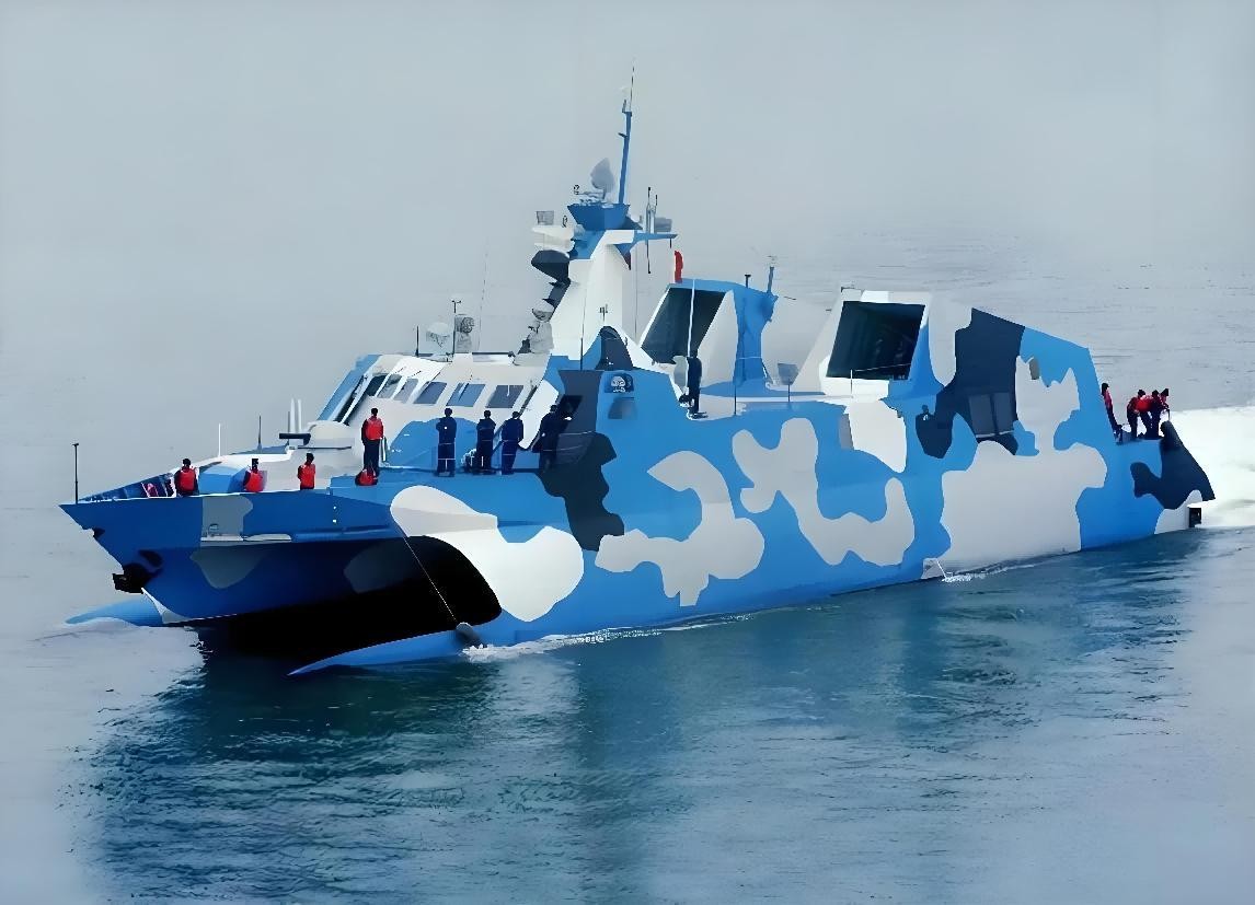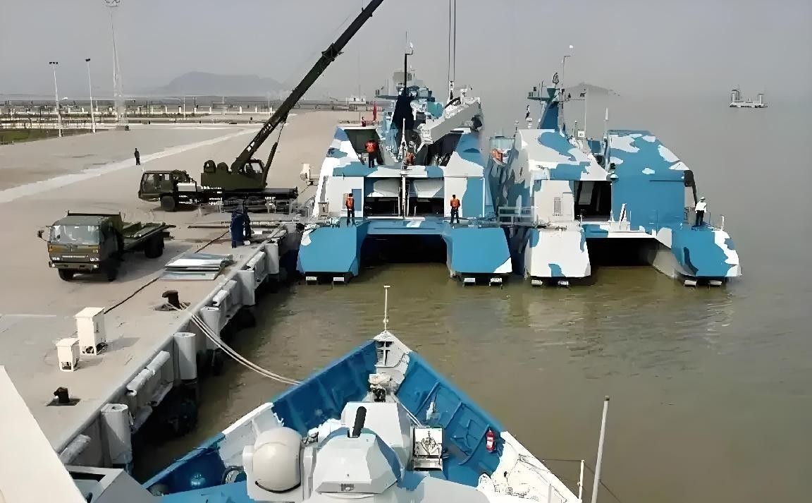2004年,上海船厂里一艘外形奇特的小艇悄然下水。这就是022导弹艇的首艇,长42.6米,宽12.2米,排水量220吨,双体穿浪设计让它看起来像科幻电影里的飞船。当时中国海军正面临严峻挑战,南海局势紧张,而我们的大舰建造周期长,成本高,急需一种能快速部署的反舰力量。