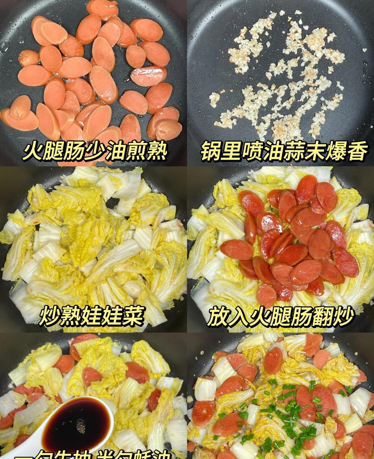 在炒制的过程中,火候的掌握非常重要,火太大会导致菜品变得过于干燥,火太小则可能影响口感。适中的火力可以让香肠的油脂渗透到娃娃菜中,使其更加美味。炒菜时可以加入一些蒜末,增加香气,提升整体的风味。这样的搭配,既简单又能让人感受到浓浓的家常气息。