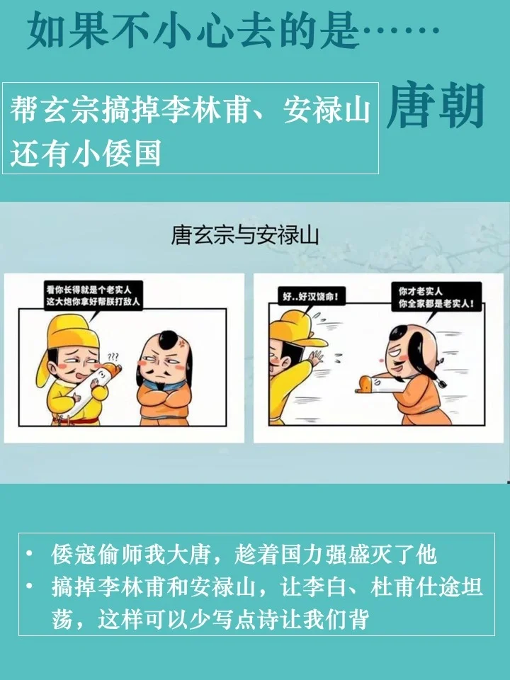 ✅去唐朝的话,搞掉李林甫,让我爱的李白,杜甫仕途坦荡,少写点诗让我们背,顺道掐S安禄山。