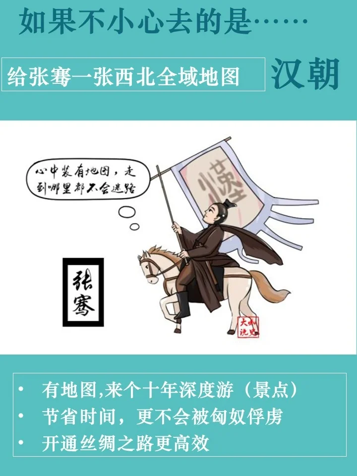 ✅去汉朝的话,给张骞带本地图,他就可以来个西域深度游了,大汉早早统一西域;