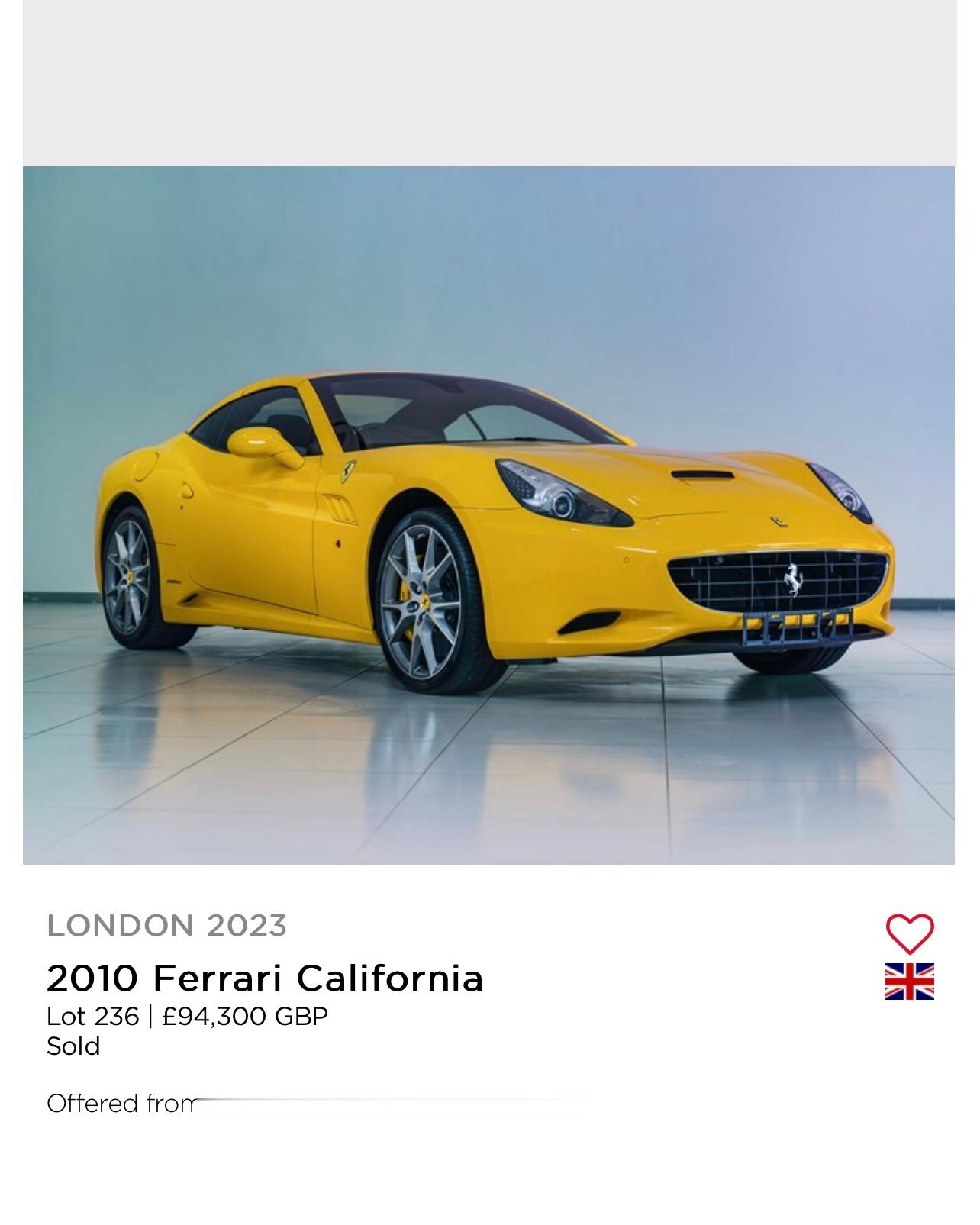 两辆车的车况类似,都是准新车,里程表100公里左右,在国内备受冷落的California,成交价是国内被炒上天的348 TS的两倍。